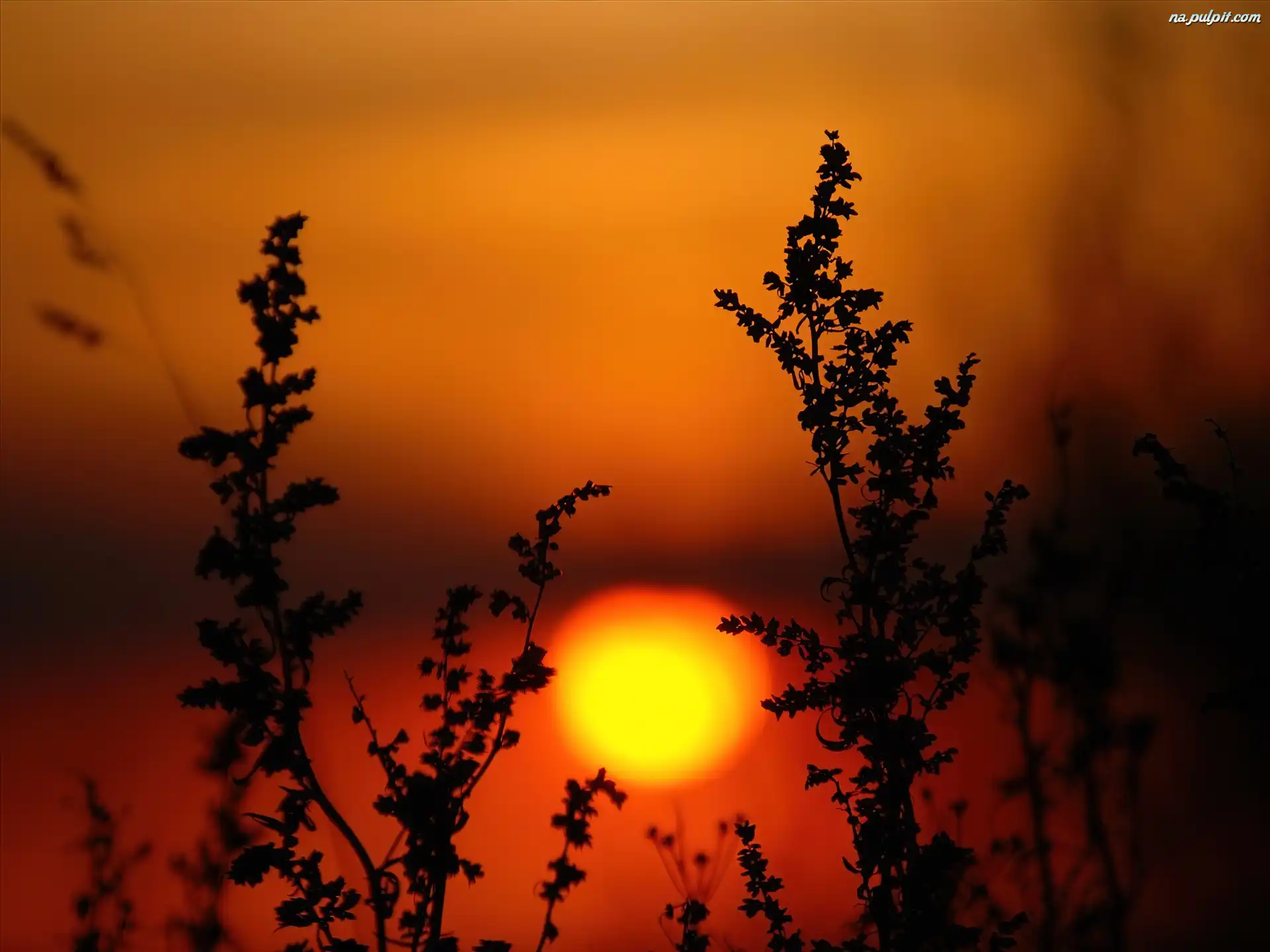 Trawę, Widziany, Zachod Słońca, Przez