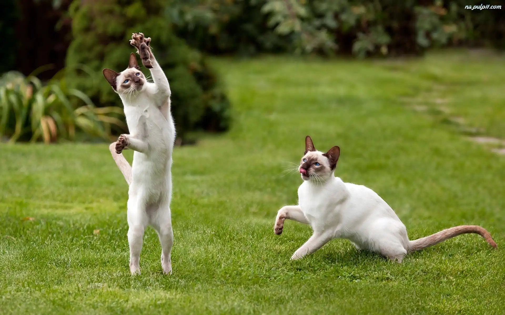 Trawnik, Dwa, Myszka, Koty Syjamskie Na Pulpit