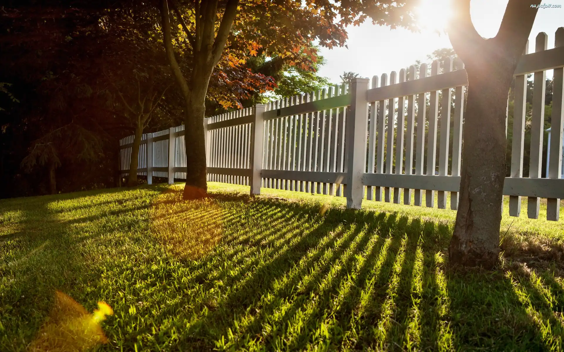 Światło, Płot, Drzewa, Trawnik, Przebijające Na Pulpit