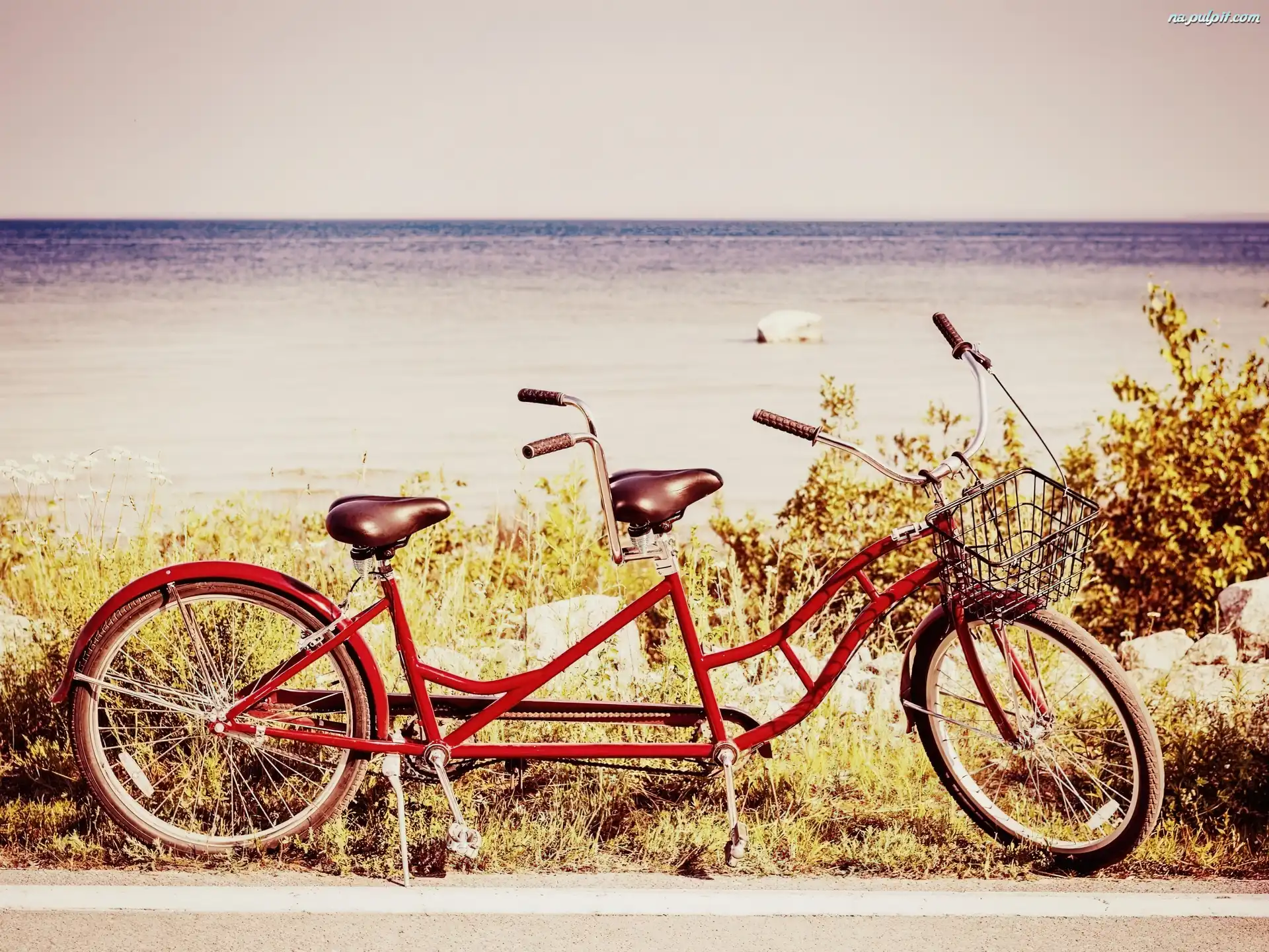Trawy, Tandem, Rower, Czerwony, Suche