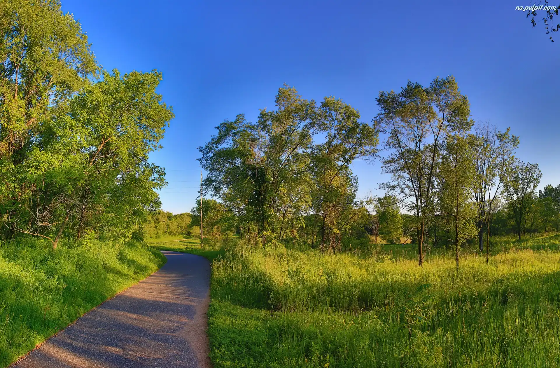 Trawy, Pola, Droga, Drzewa Na Pulpit