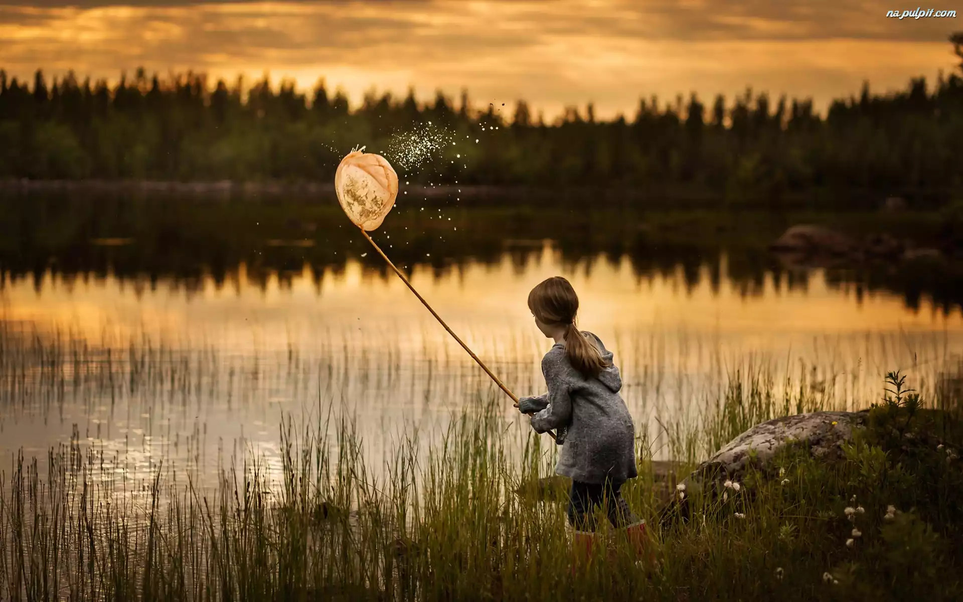 Trawy, Jezioro, Dziewczynka, Las Na Pulpit