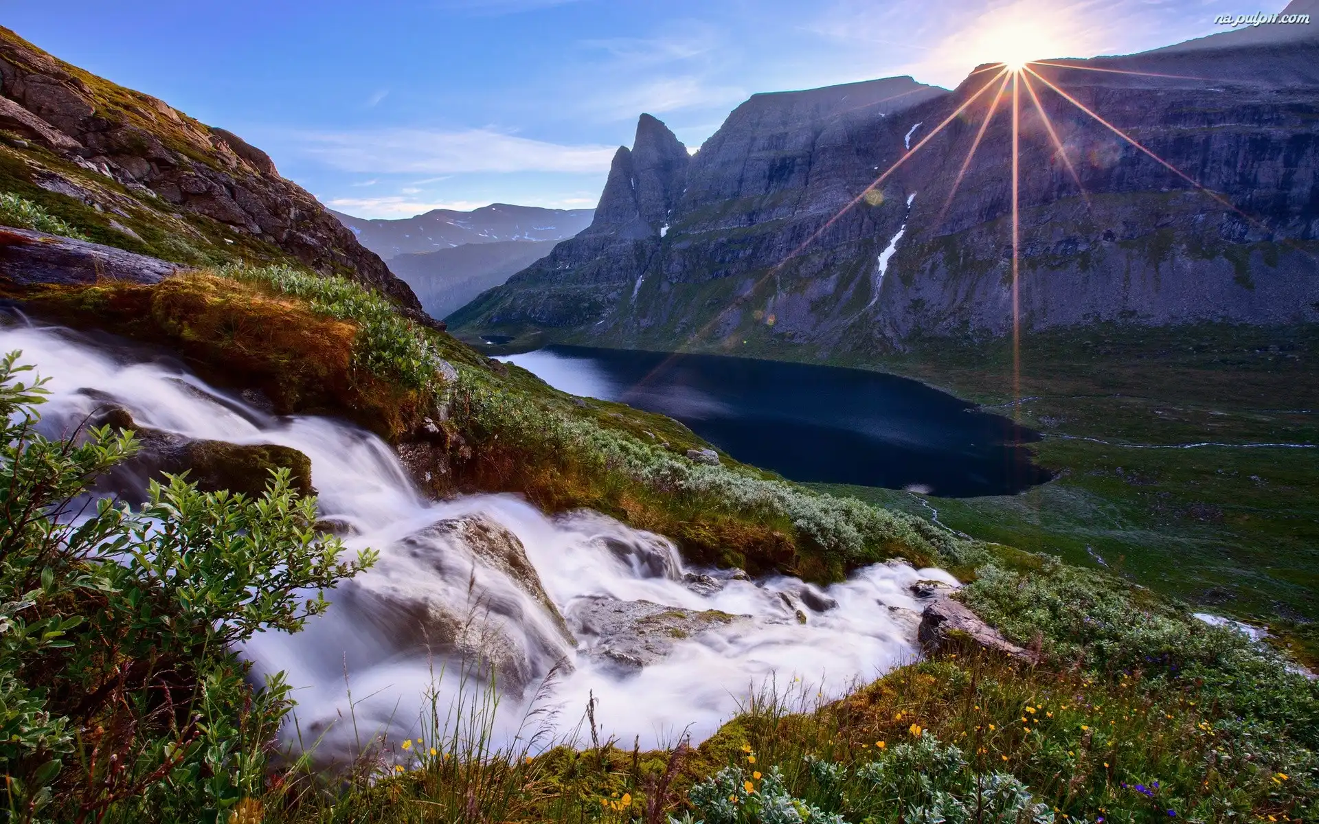 Trawy, Promienie, Góry, Słońca Na Pulpit
