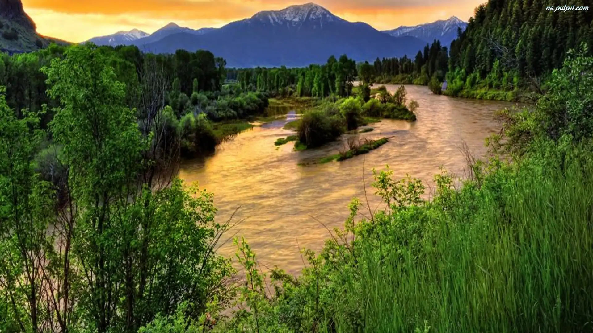 Trawy, Rzeka, Góry, Las Na Pulpit