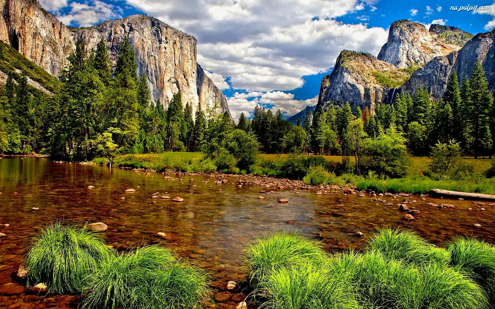Trawy, Woda, Góry, Drzewa Na Pulpit