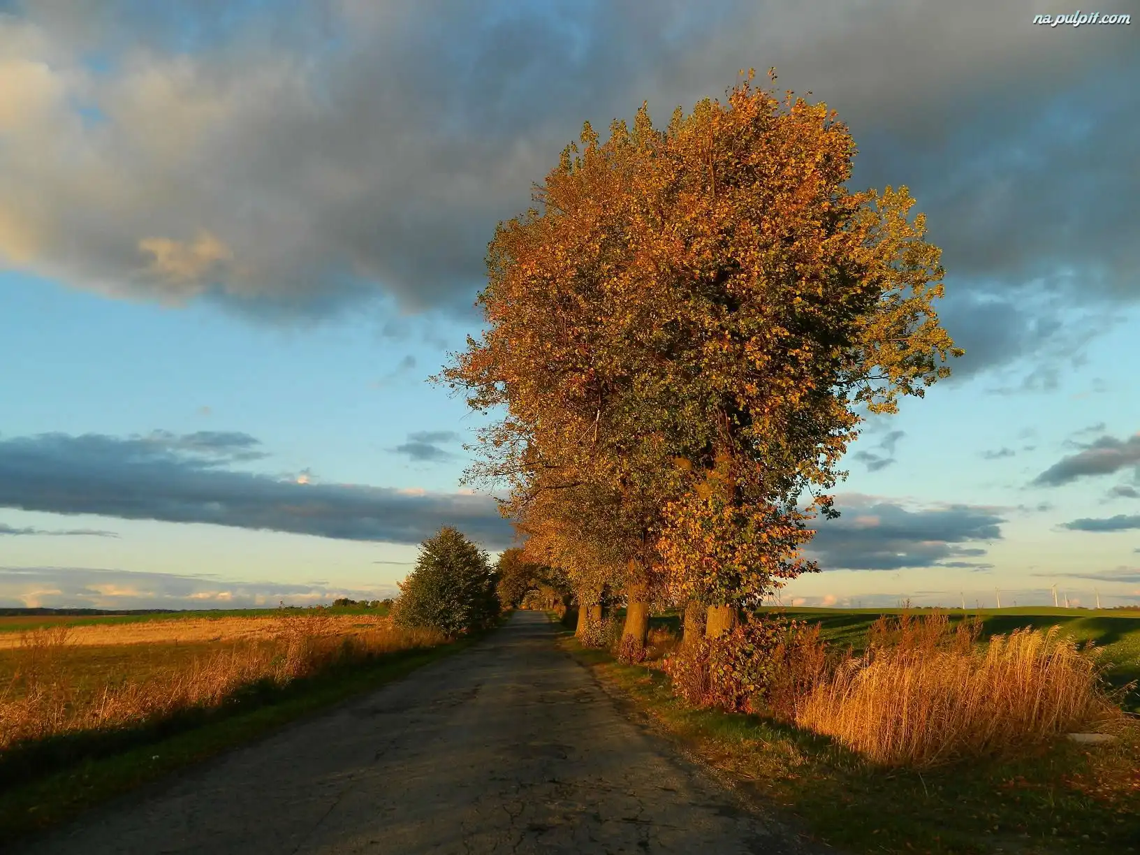 Trawy, Drzewa, Droga, Jesień, Zeschłe Na Pulpit