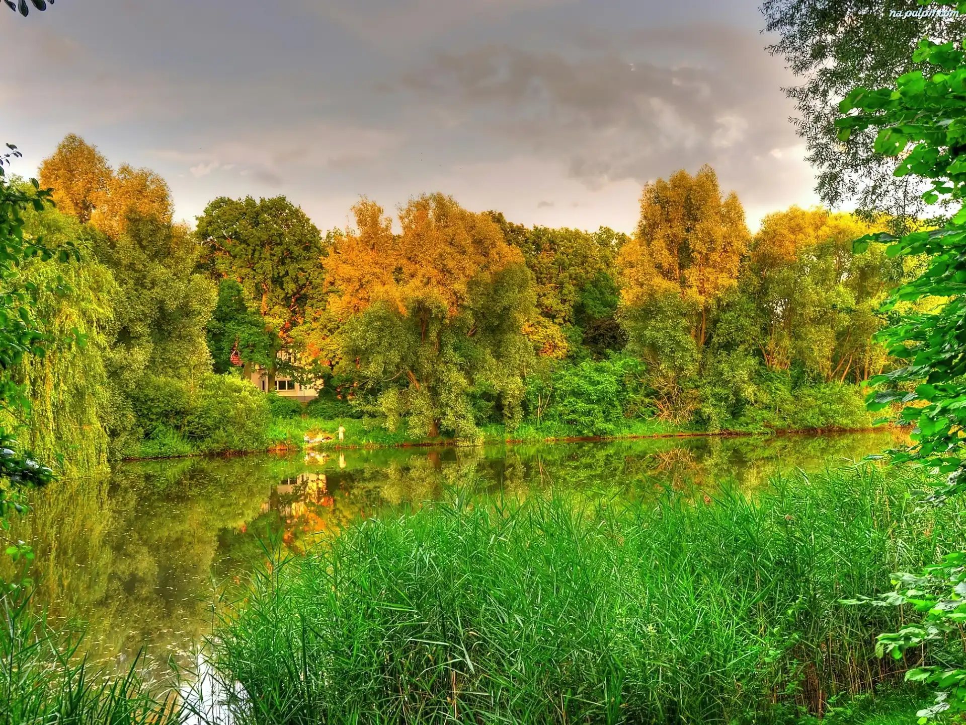 Trawy, Las, Jesień, Jezioro Na Pulpit