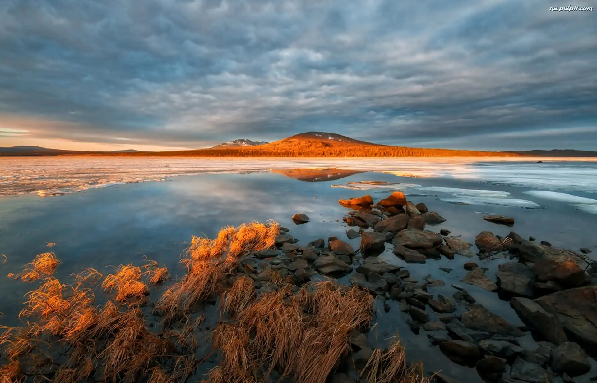 Trawy, Wzgórze, Kamienie, Jezioro, Suche Na Pulpit
