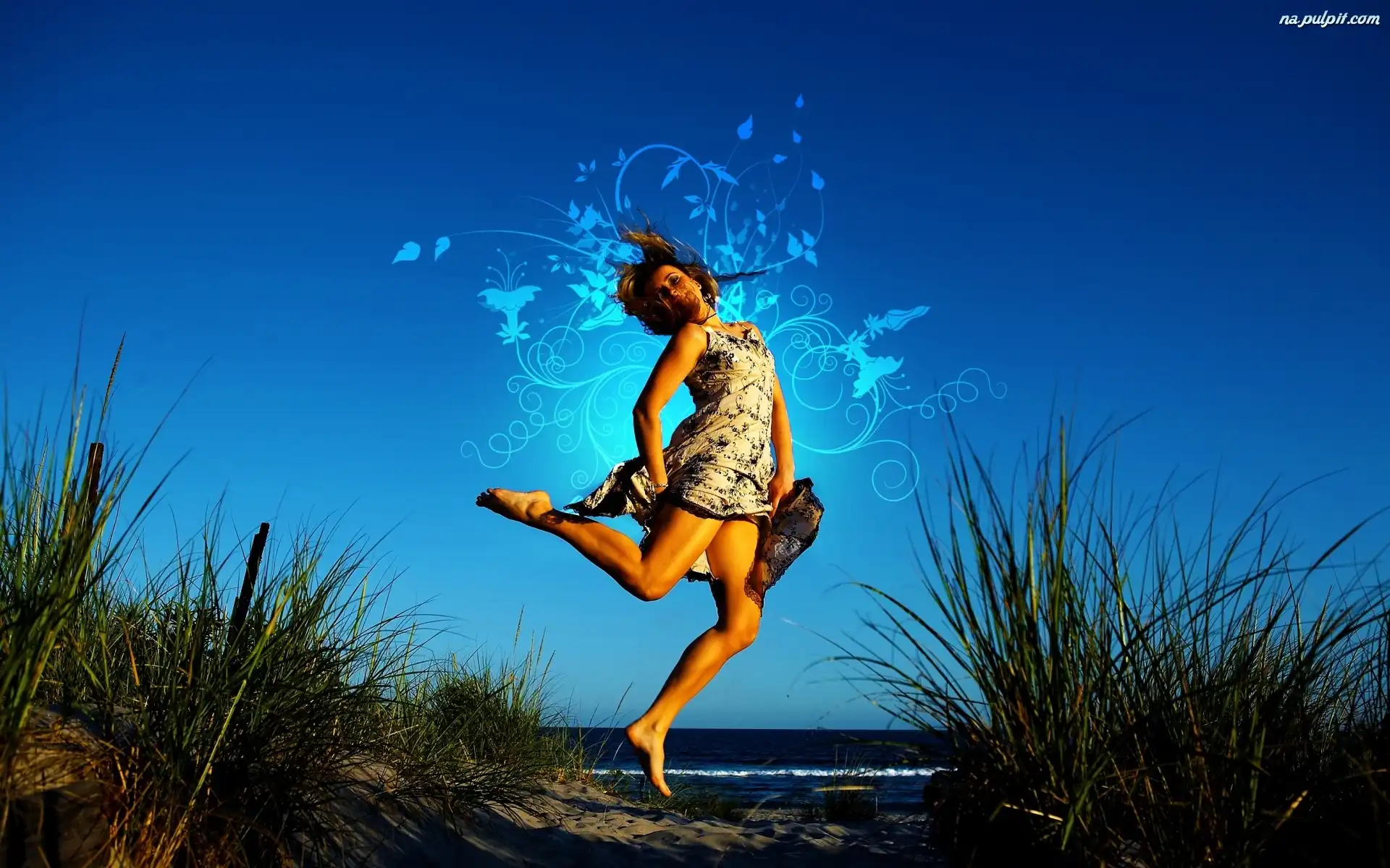 Trawy, Sukienka, Kobieta, Plaża Na Pulpit
