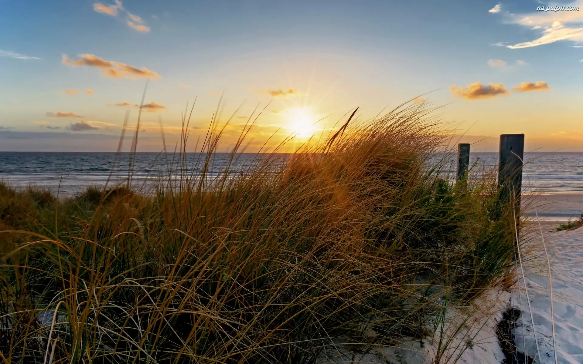 Trawy, Promienie, Plaża, Morze, Słońca Na Pulpit