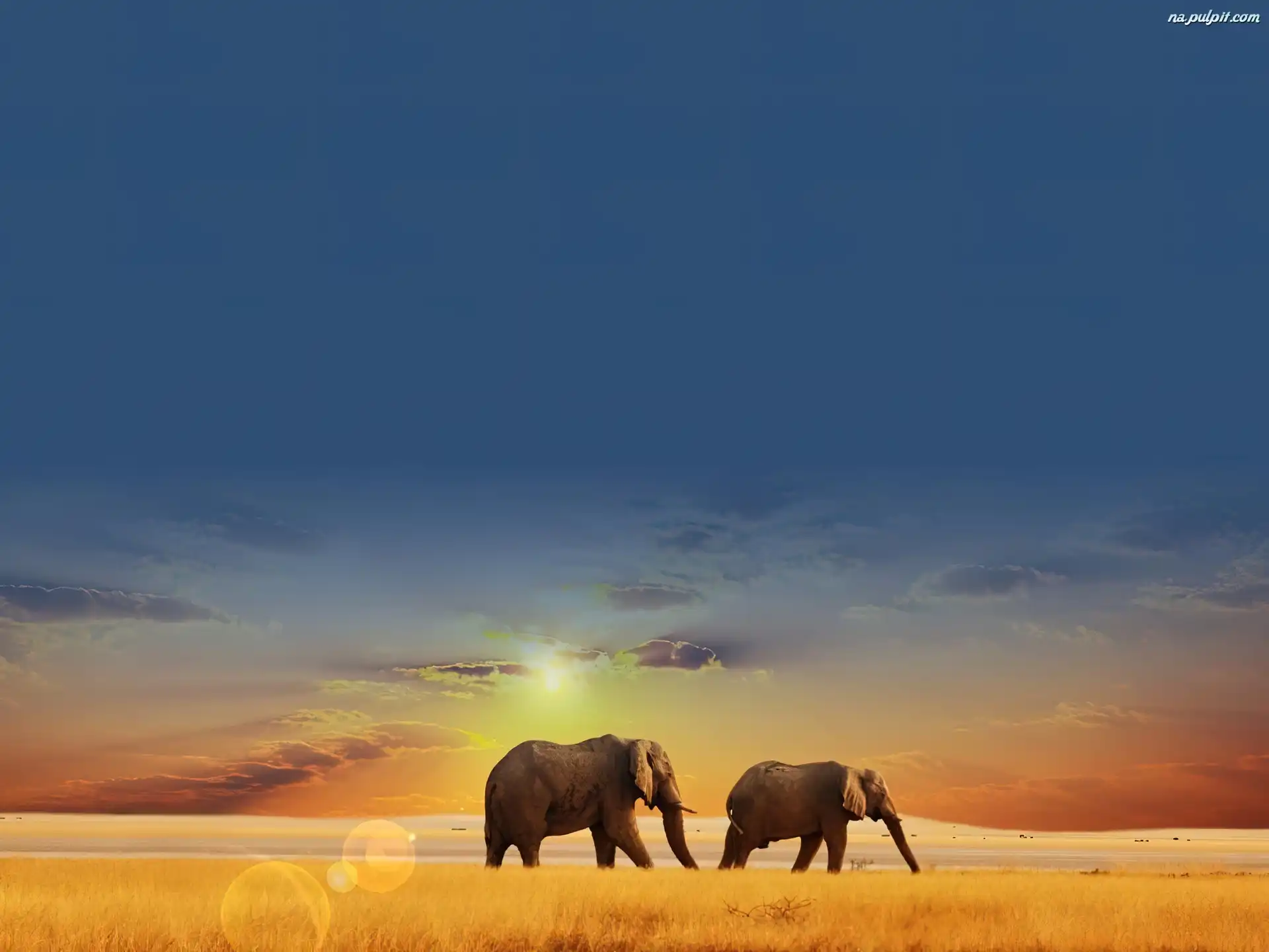Niebo, Trawy, Słonie Na Pulpit