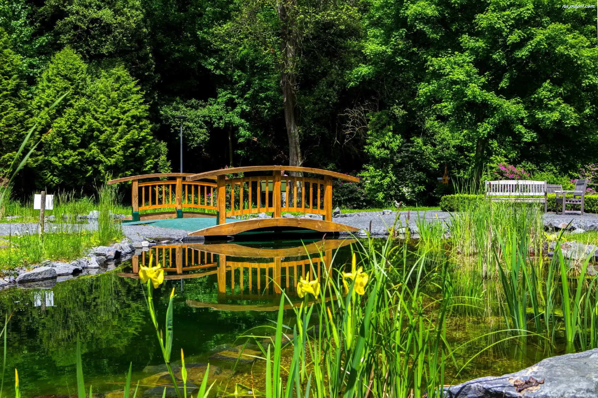 Trawy, Rzeczka, Mostek, Park, Kwiaty Na Pulpit