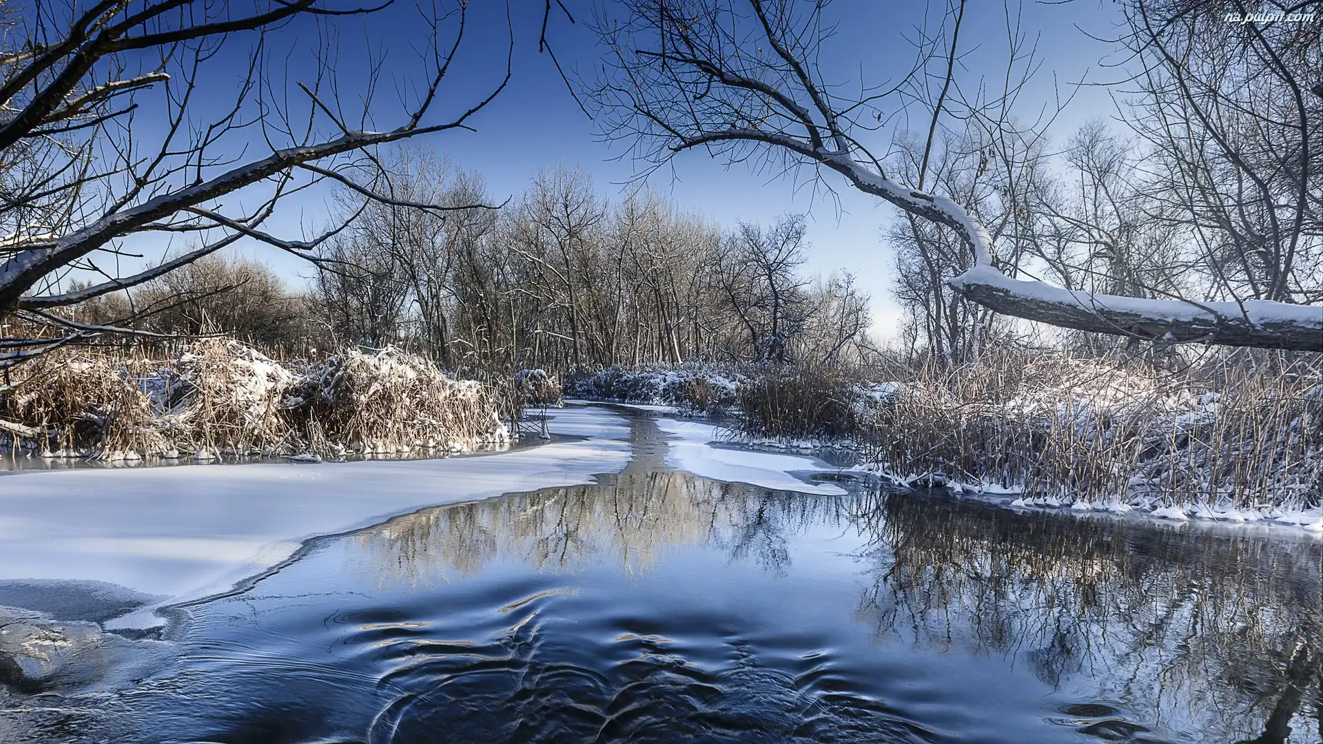 Trawy, Zima, Rzeka, Drzewa Na Pulpit
