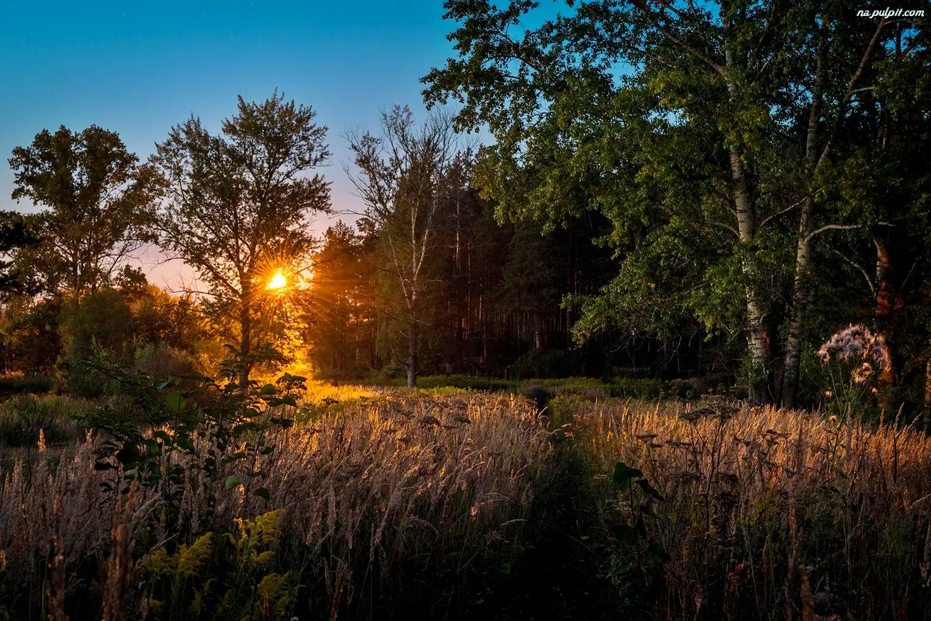 Trawy, Las, Słońca, Zachód, Suche Na Pulpit