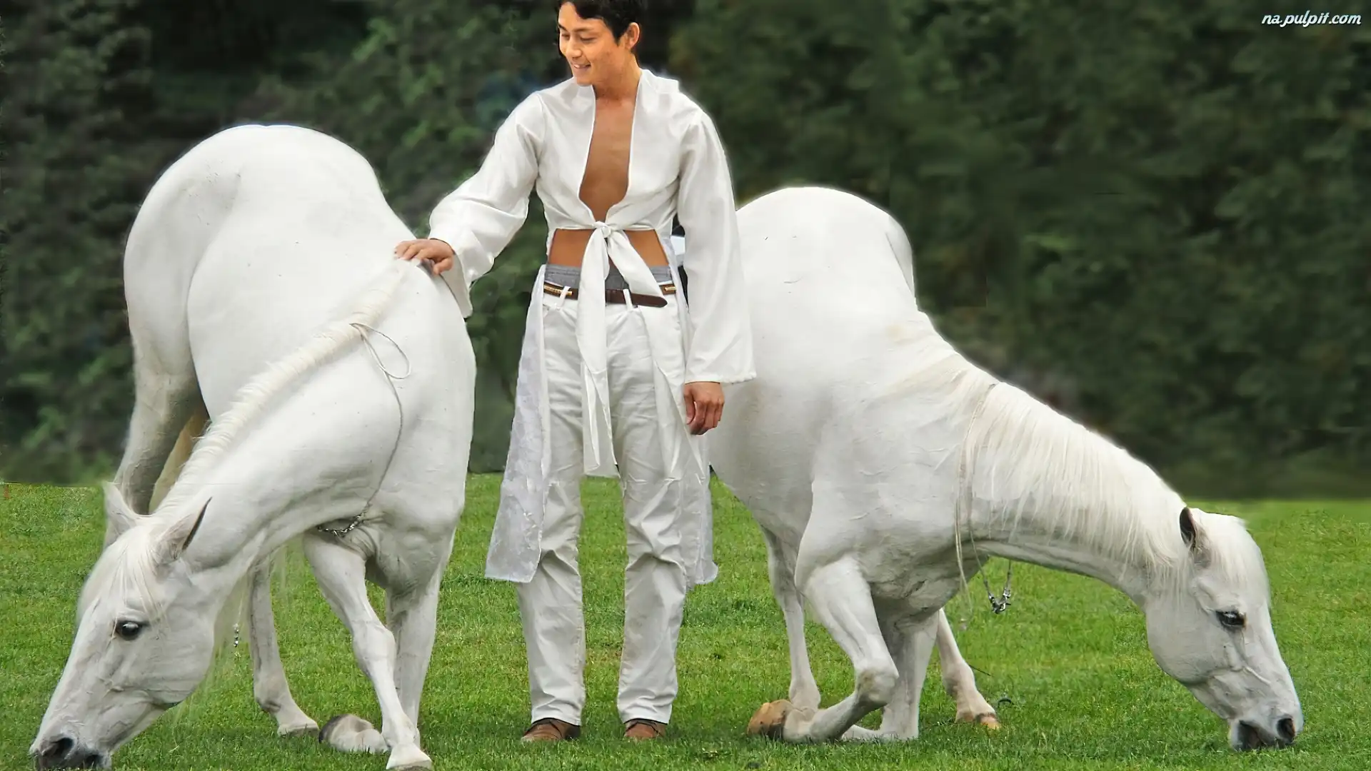 Treser, Białe, Dwa, Konie, Mężczyzna