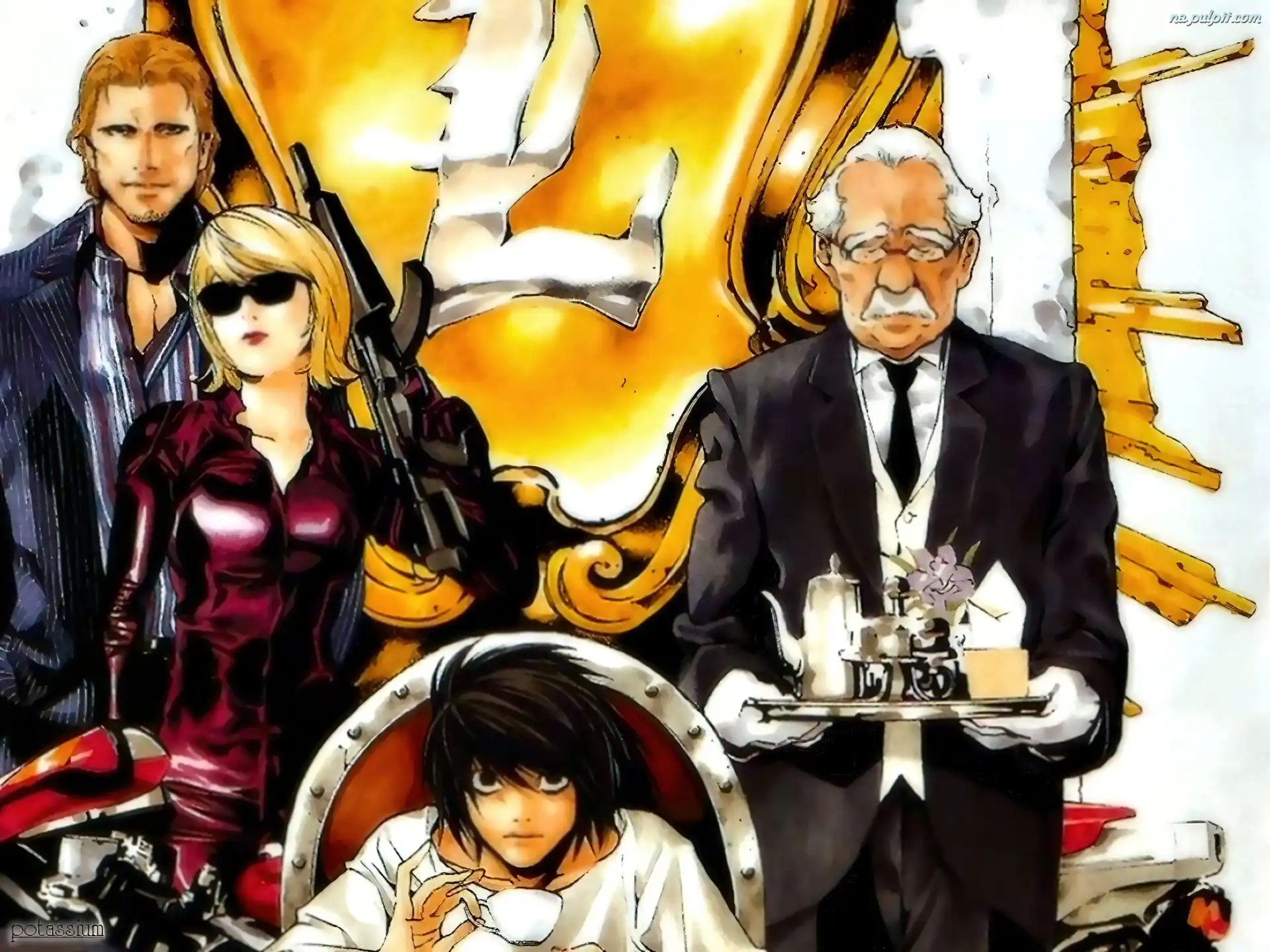 kelner, tron, ludzie, taca, Death Note, pistolet Na Pulpit