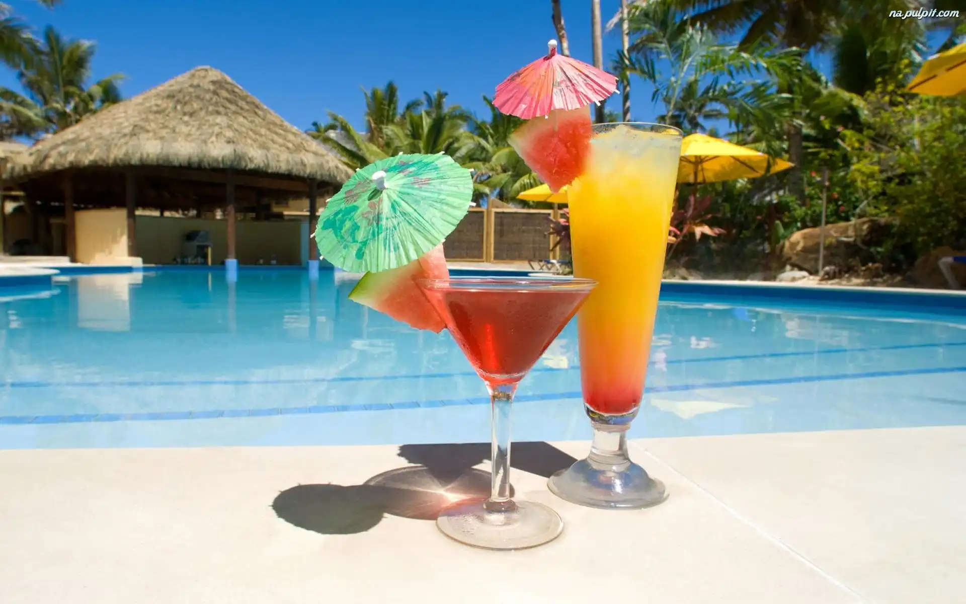Tropik, Basen, Drinki, Kolorowe, Dom Na Pulpit