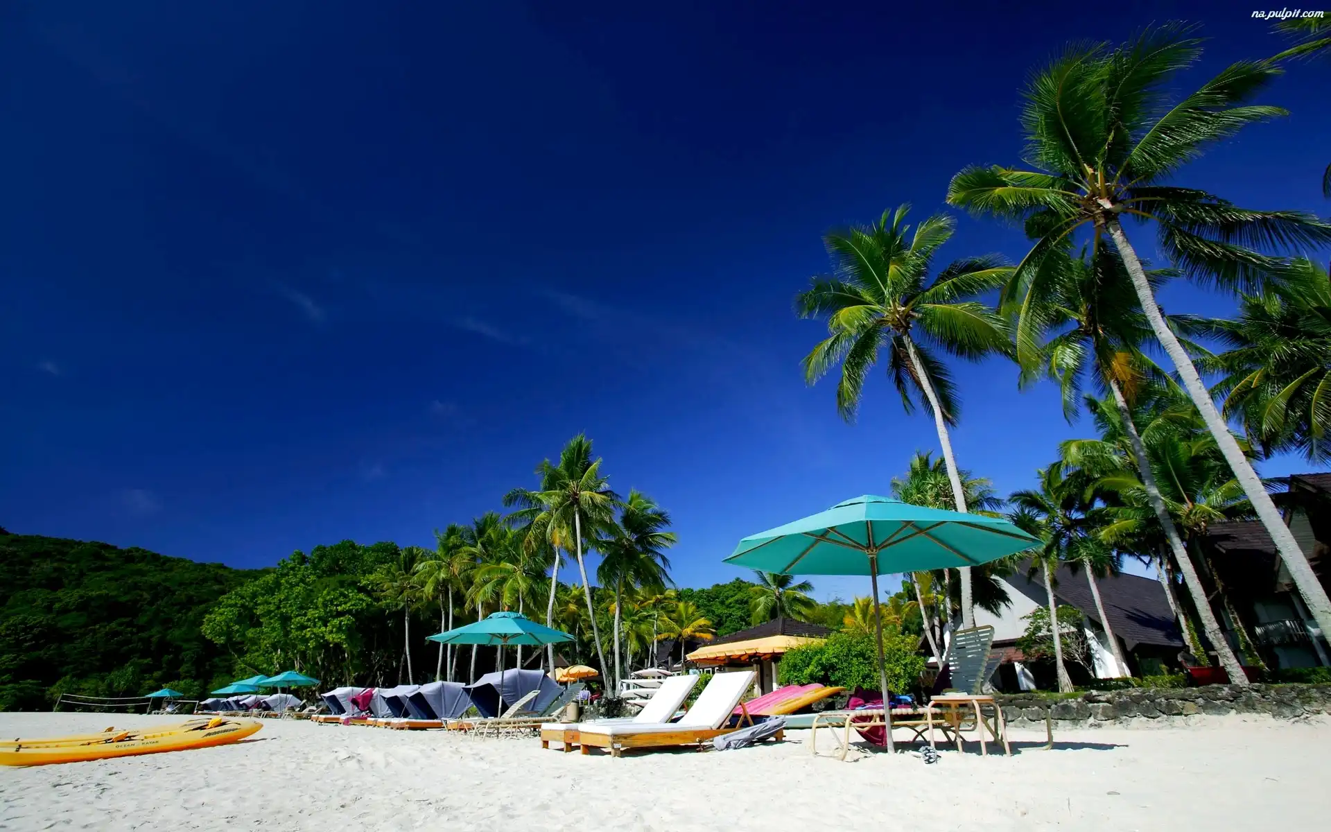 Tropik, Plaża, Niebo, Palmy Na Pulpit