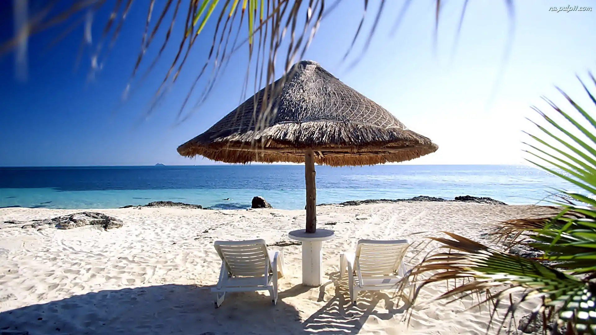 Tropik, Parasol, Plaża, Ocean, Leżaki Na Pulpit