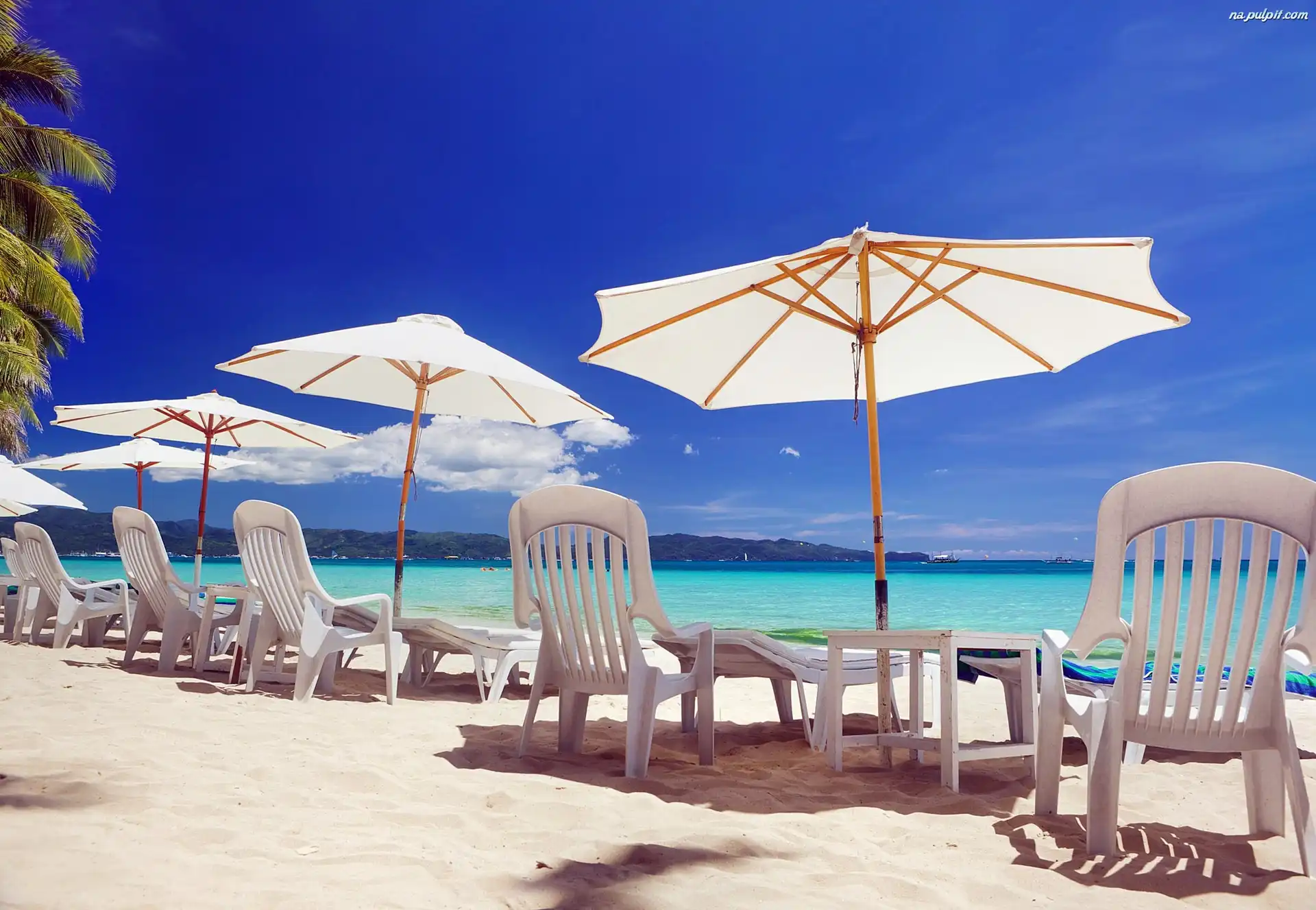Tropik, Plaża, Ocean, Parasole Na Pulpit