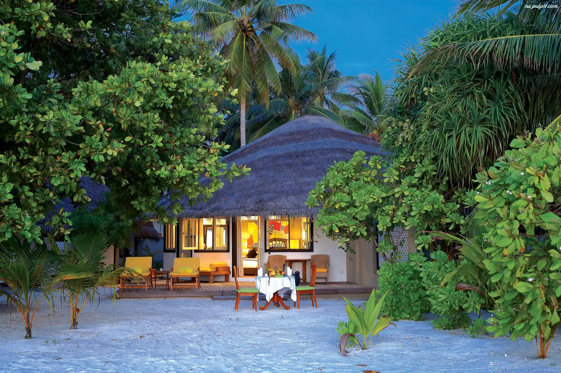 Tropik, Oświetlony, Plaża, Domek Na Pulpit