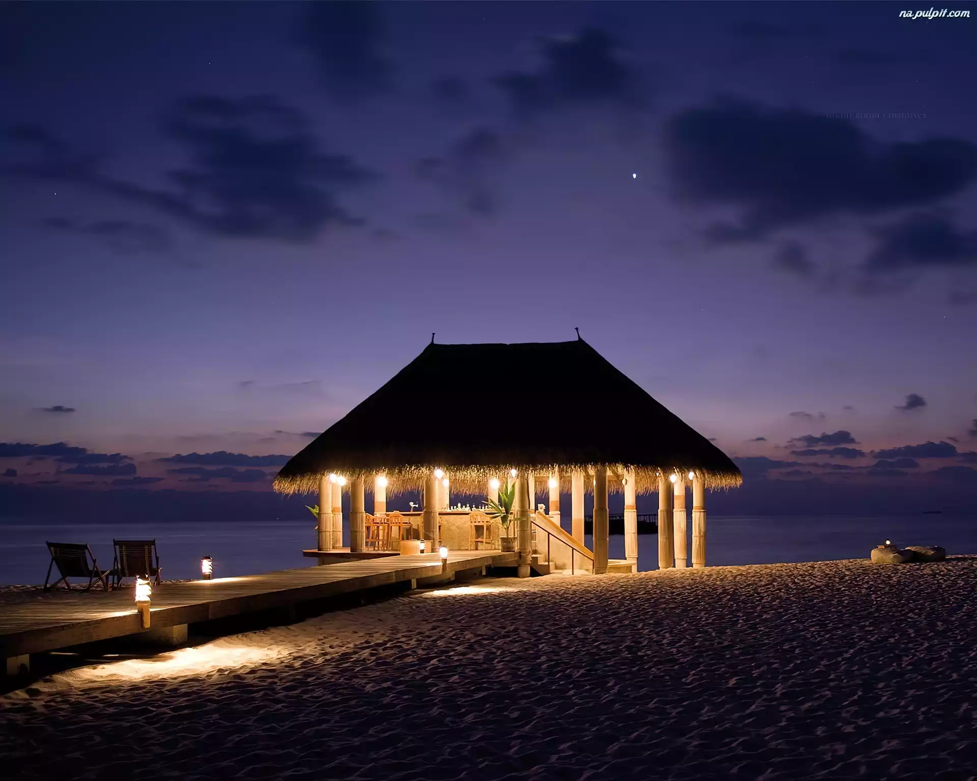 Tropik, Oświetlony, Pomost, Plaża, Szałas Na Pulpit