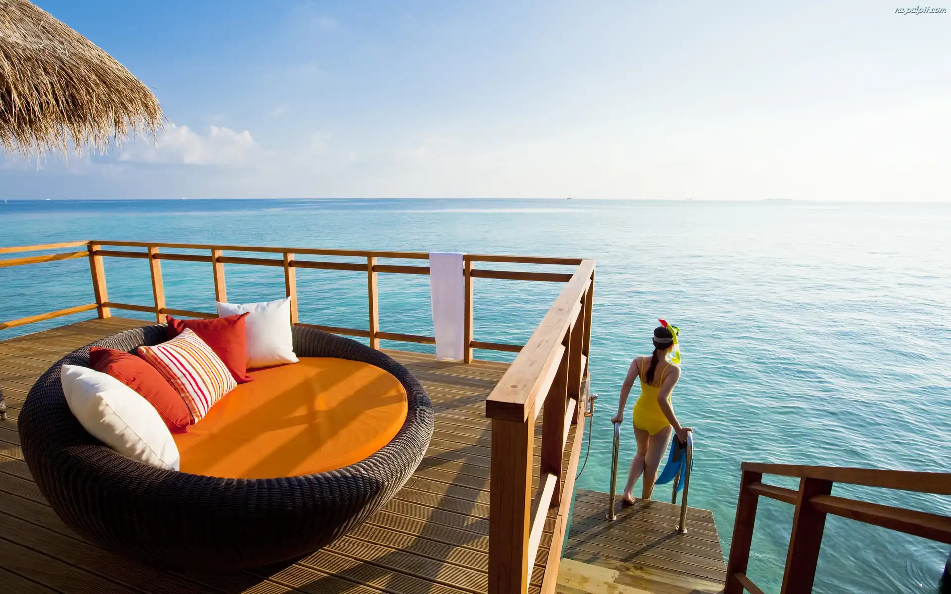 Hoteliki, Malediwy, Ocean Palma, Zachód Słońca, Morze Żaglówki, Morze, Wybrzeże Drzewo, Keira Knightley Lauren Graham Słońca, Shi Shi, Plaża, Zachód USA