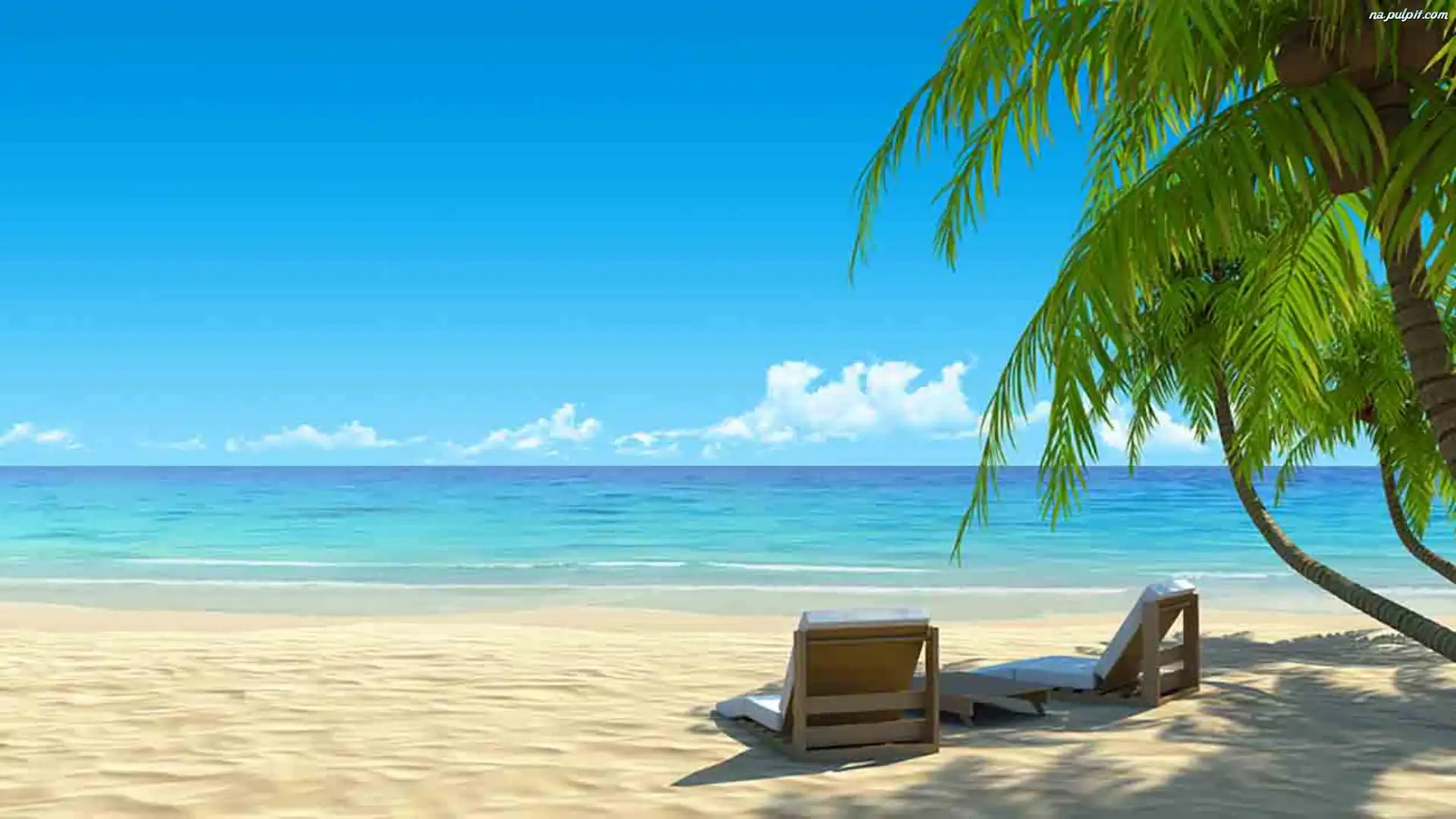 Leżaki, Tropiki, Wakacje, Palmy, Plaża, Morze Na Pulpit