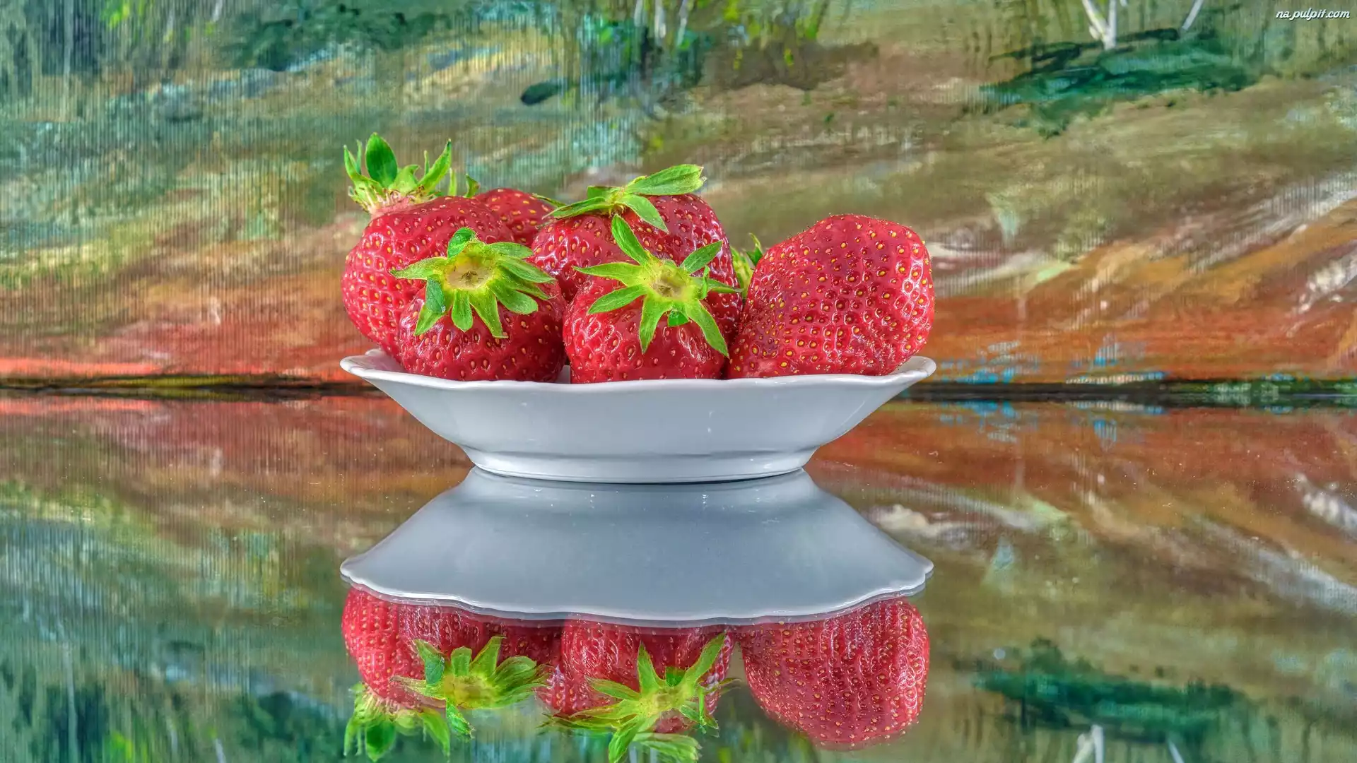 Talerz, Truskawki, Dojrzałe, Odbicie, Czerwone Na Pulpit