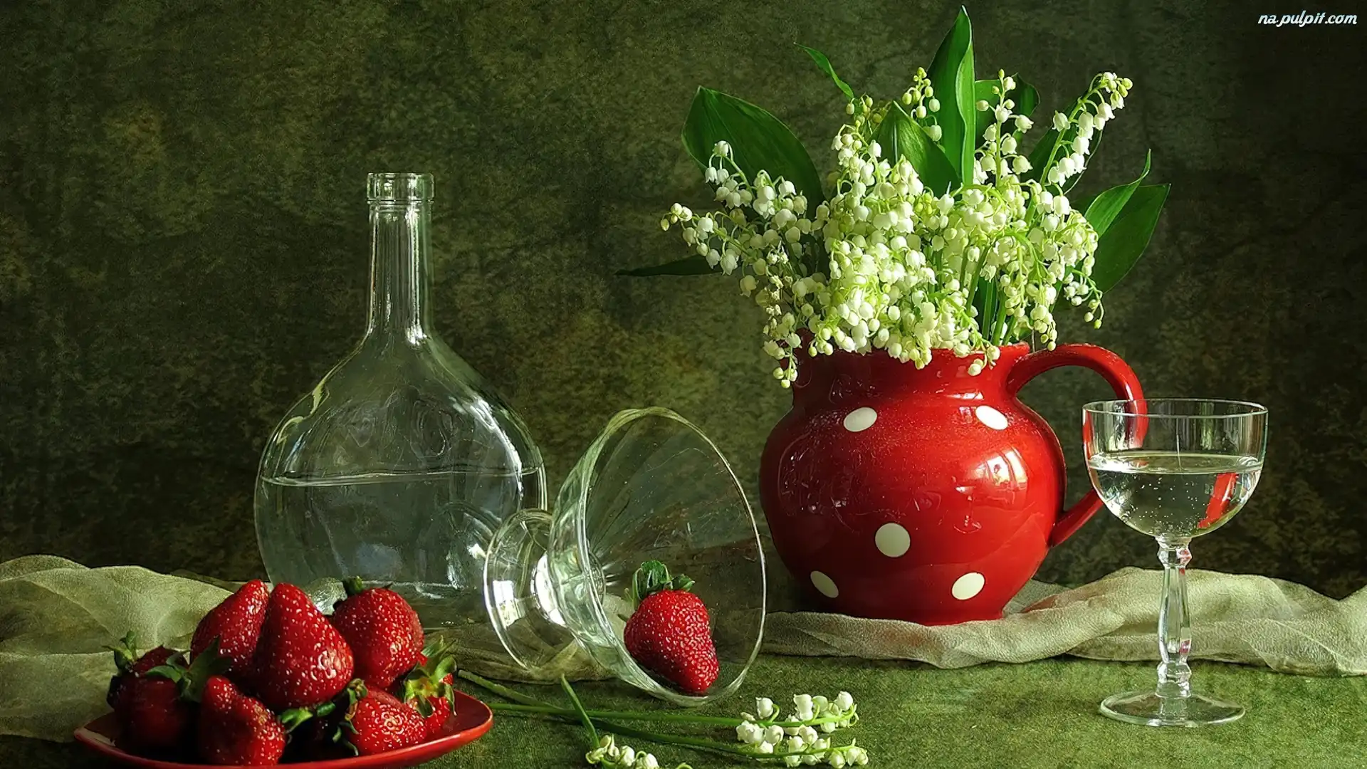 Truskawki, Szklane, Konwalie, Dzbanek, Naczynia Na Pulpit