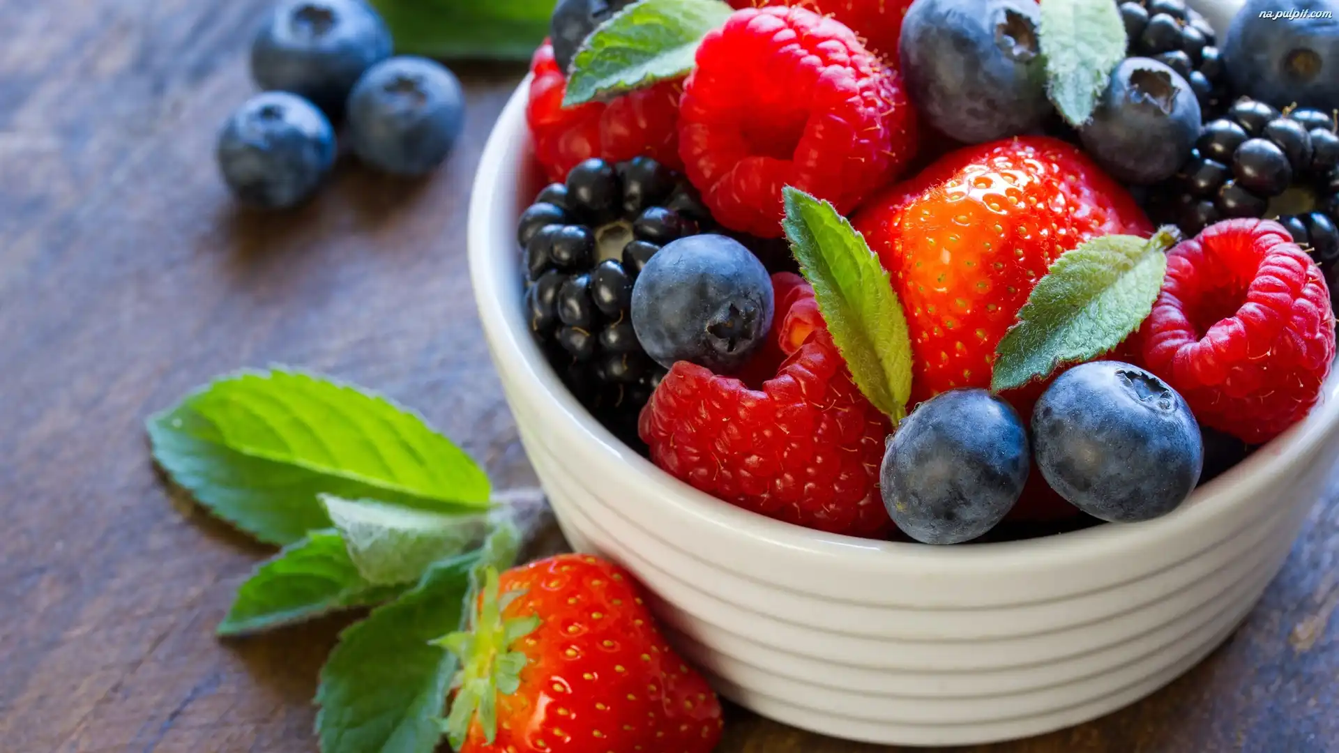 Truskawki, Borówki, Miseczka, Maliny, Owoce, Jeżyny Na Pulpit