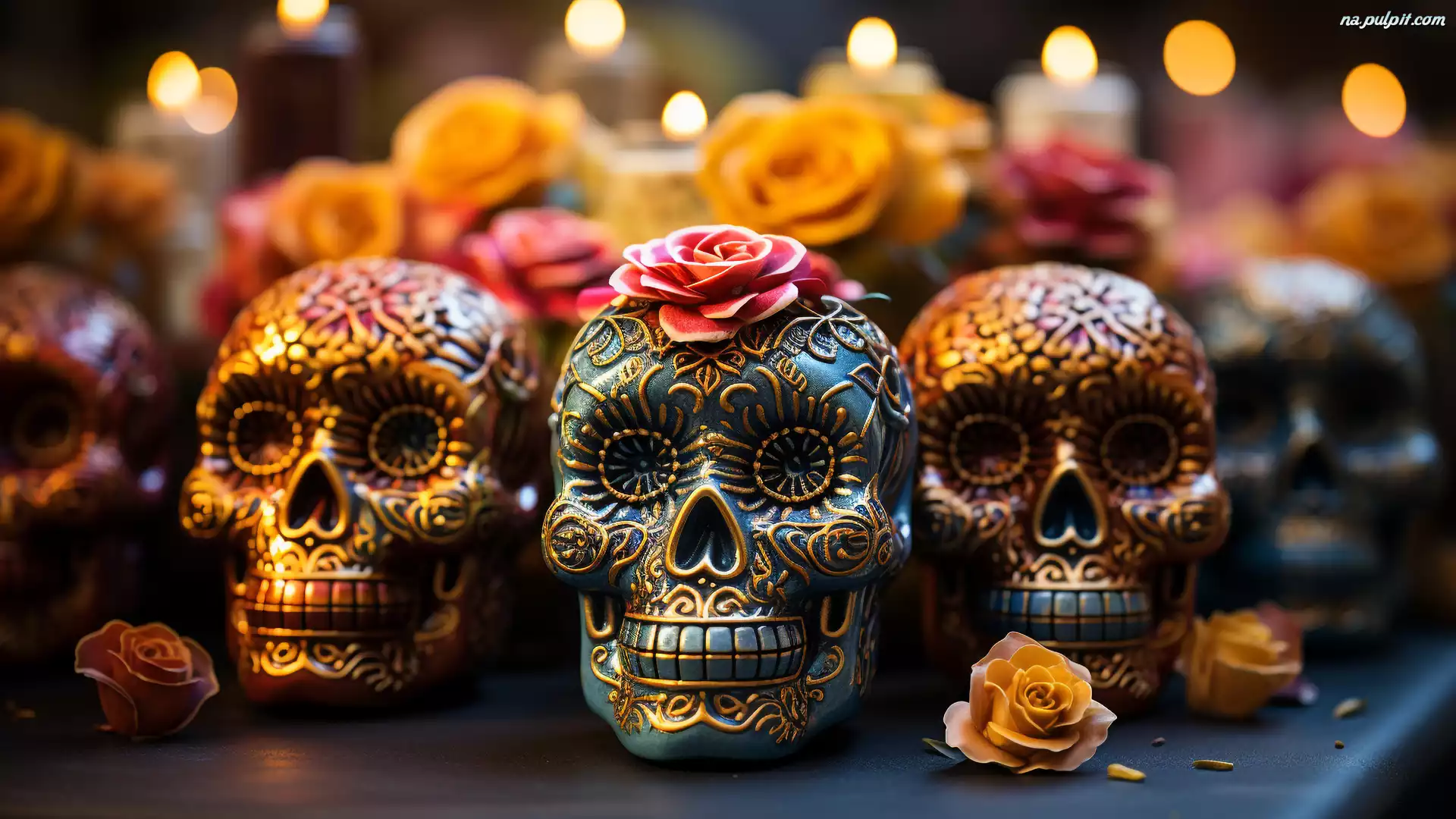 Zbliżenie, Trzy, Czaszki, Dekoracja, Grafika Na Pulpit