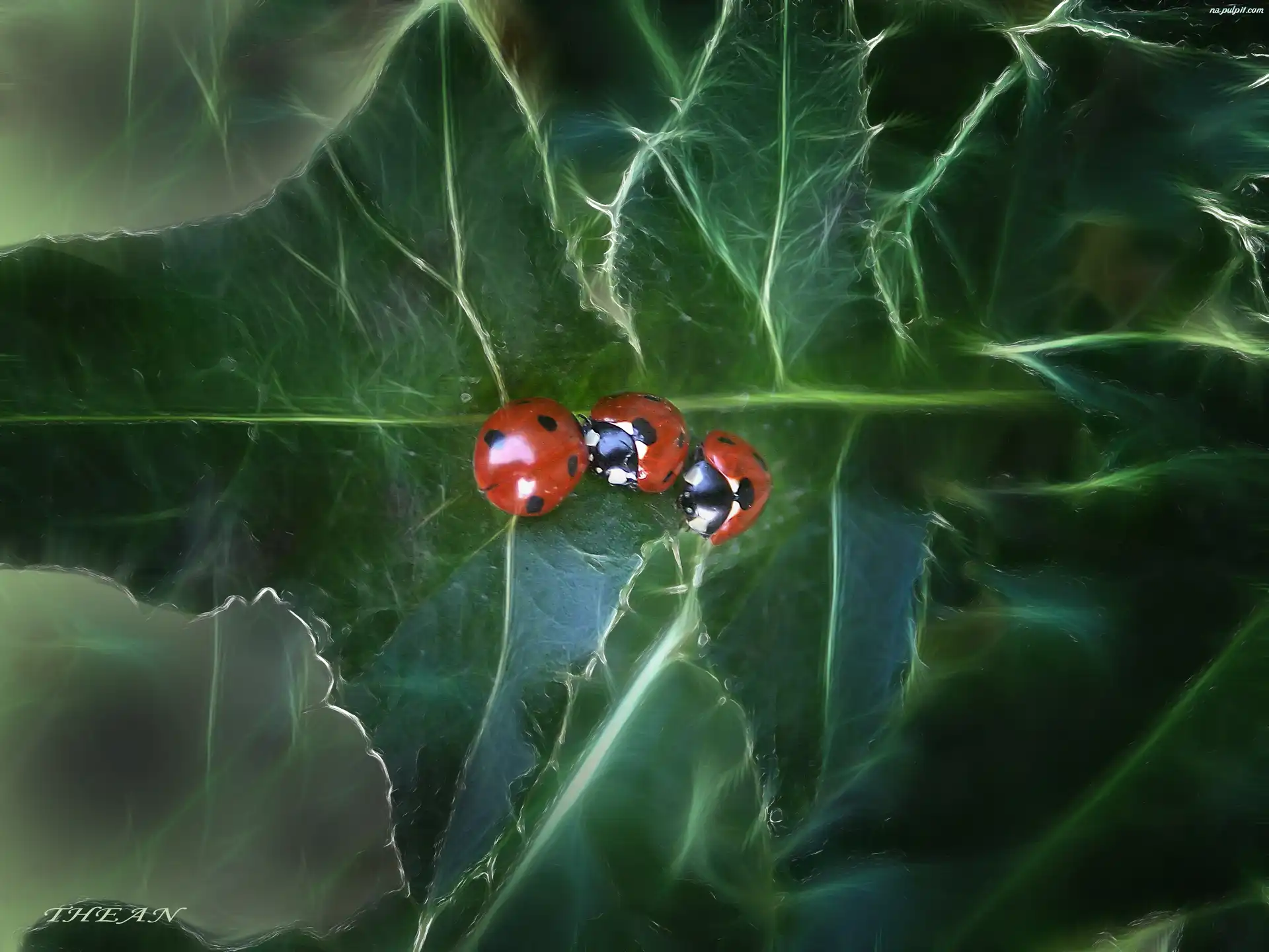 Liście, Trzy, Biedronki Na Pulpit