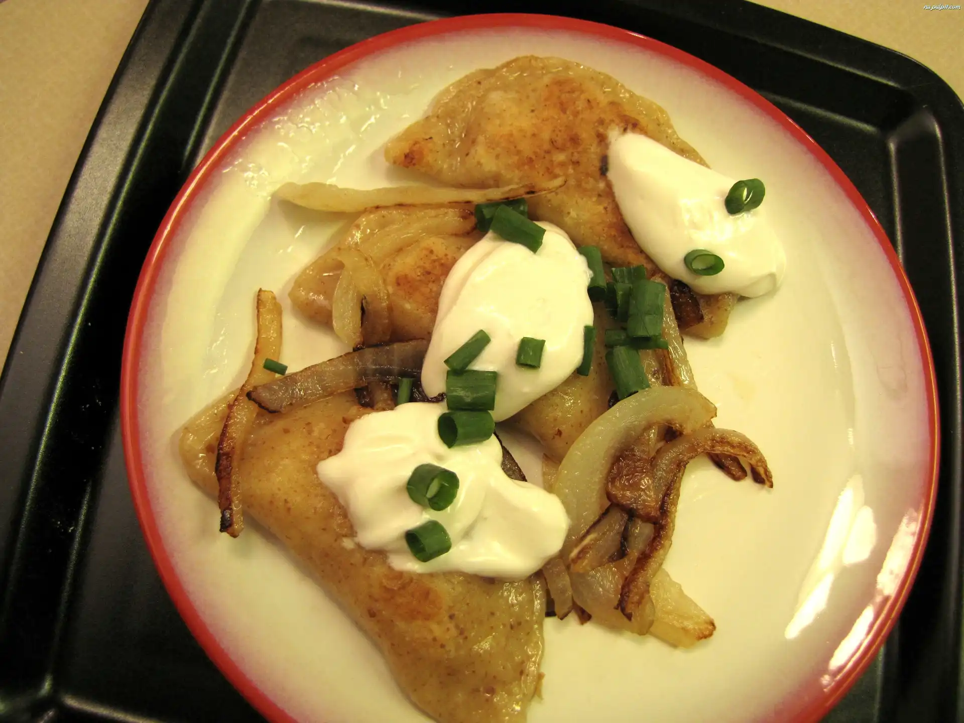 Trzy, Pierogi Drewniana, Patelnia, Pierogi, Łopatka Pierogi, Szczypiorek Smażone, Pierogi Pierogi Sztuczce, Pierogi, Talerz Owoce, Pierogi, Deska Wałek, Pielmieni, Pierogi, Deska Wałek, Mąka, Uszka, Jajko Pierogi, Rosół Domowe, Pierogi