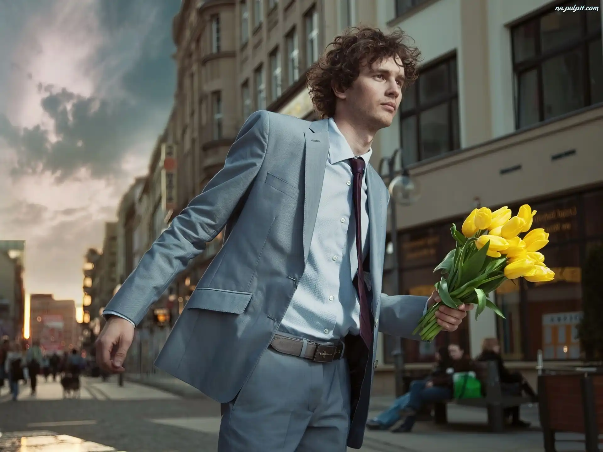 Tulipanów, Mężczyzna, Miasto, Bukiet