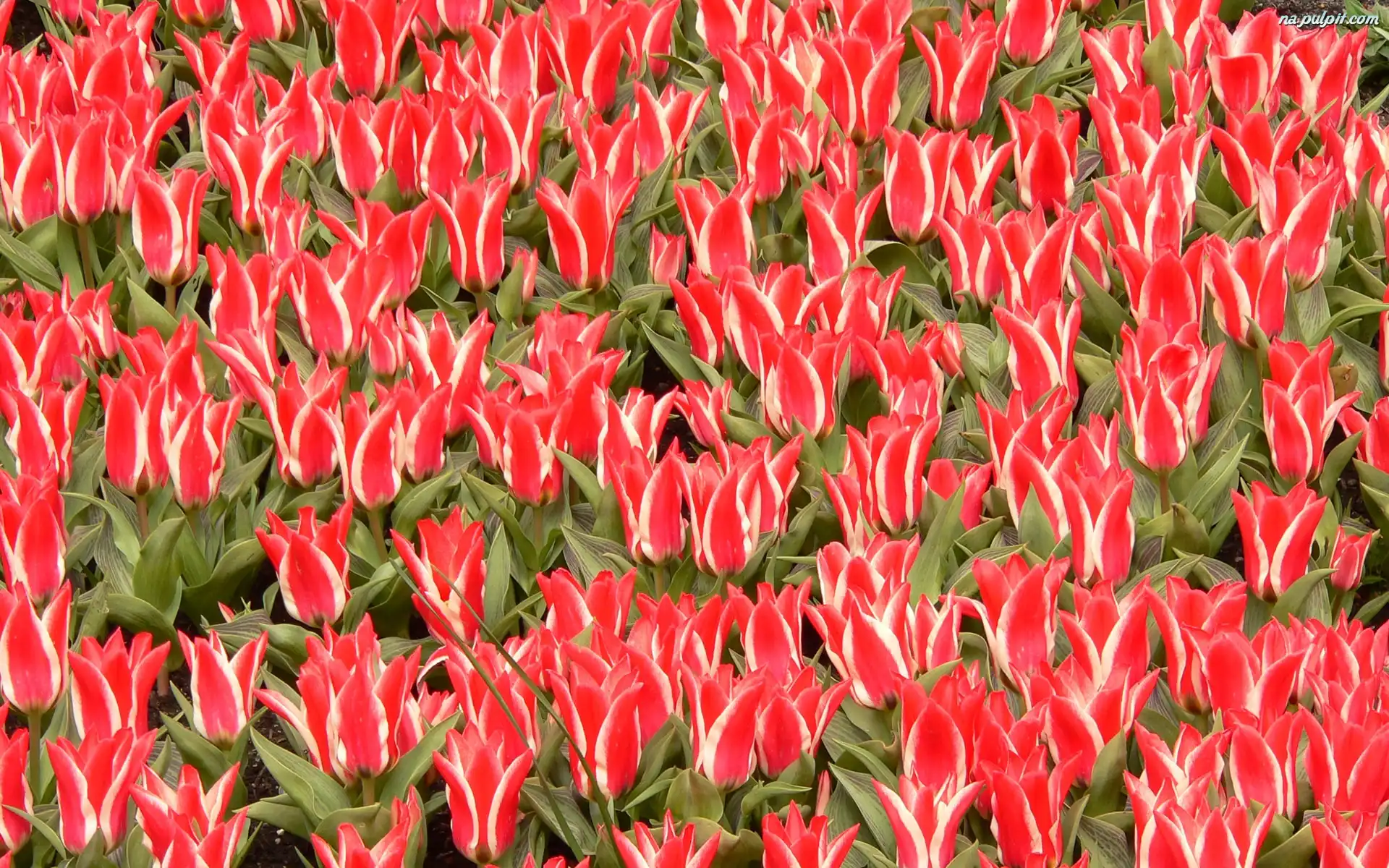 Tulipanów, Białych, Czerwono, Plantacja, Ozdobnych Na Pulpit