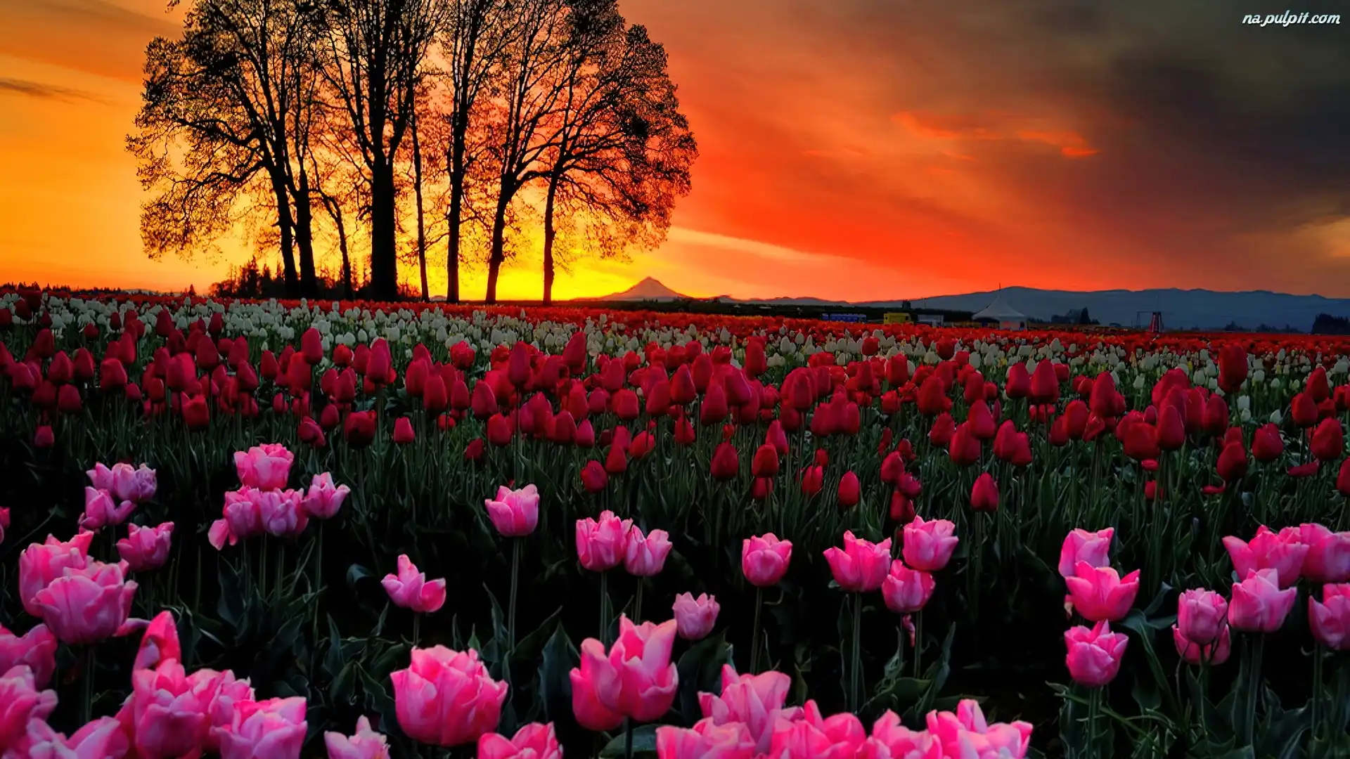 Tulipanów, Drzewa, Słońca, Zachód, Połacie Na Pulpit