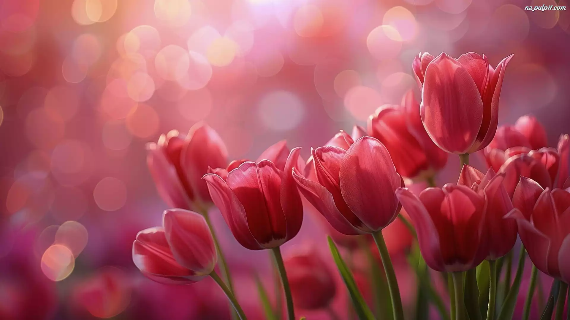 Tulipany, Czerwone, Bokeh Na Pulpit