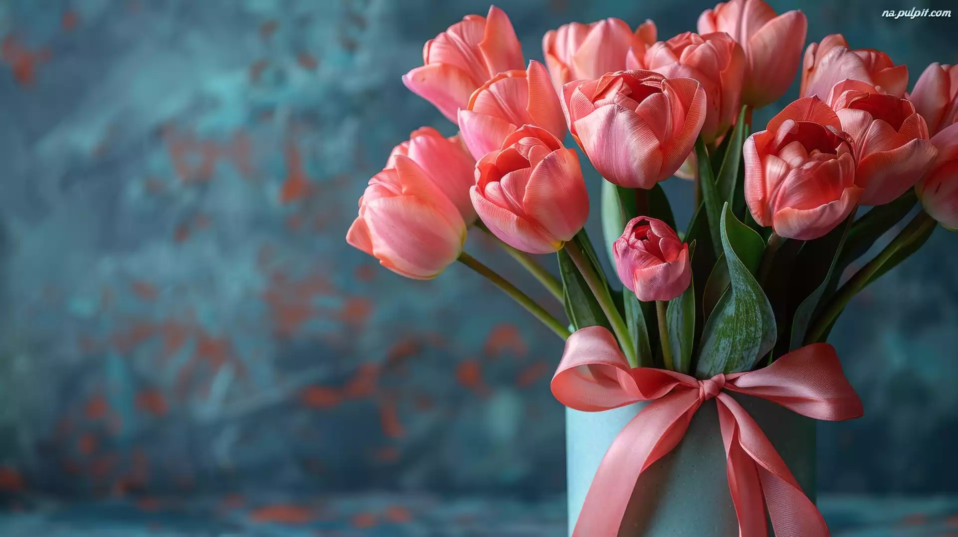 Kokarda Kwiat, Bukiet, Tulipany, Wazon, Różowe, Tulipan