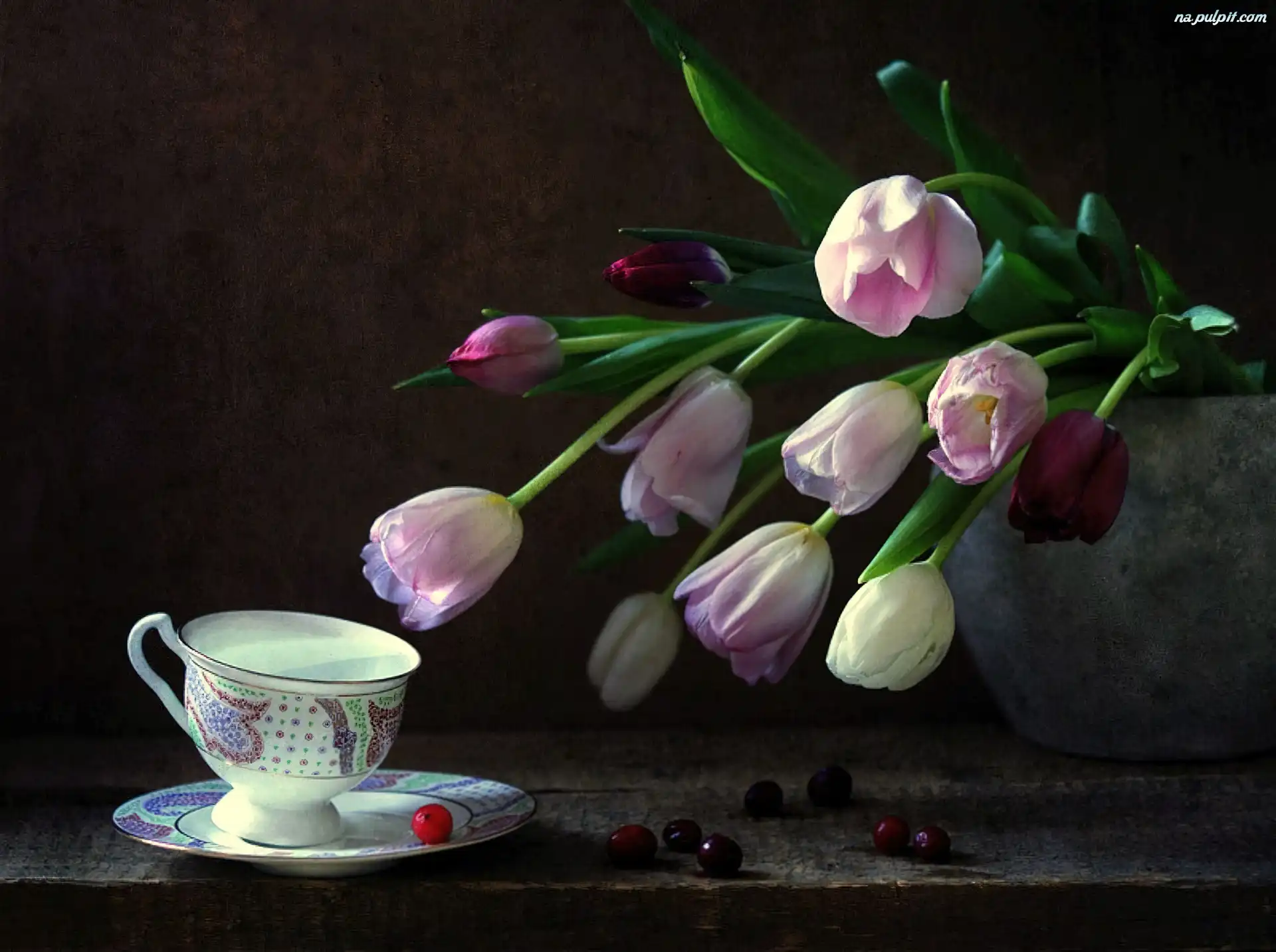 Filiżanka, Tulipany, Wazon Na Pulpit