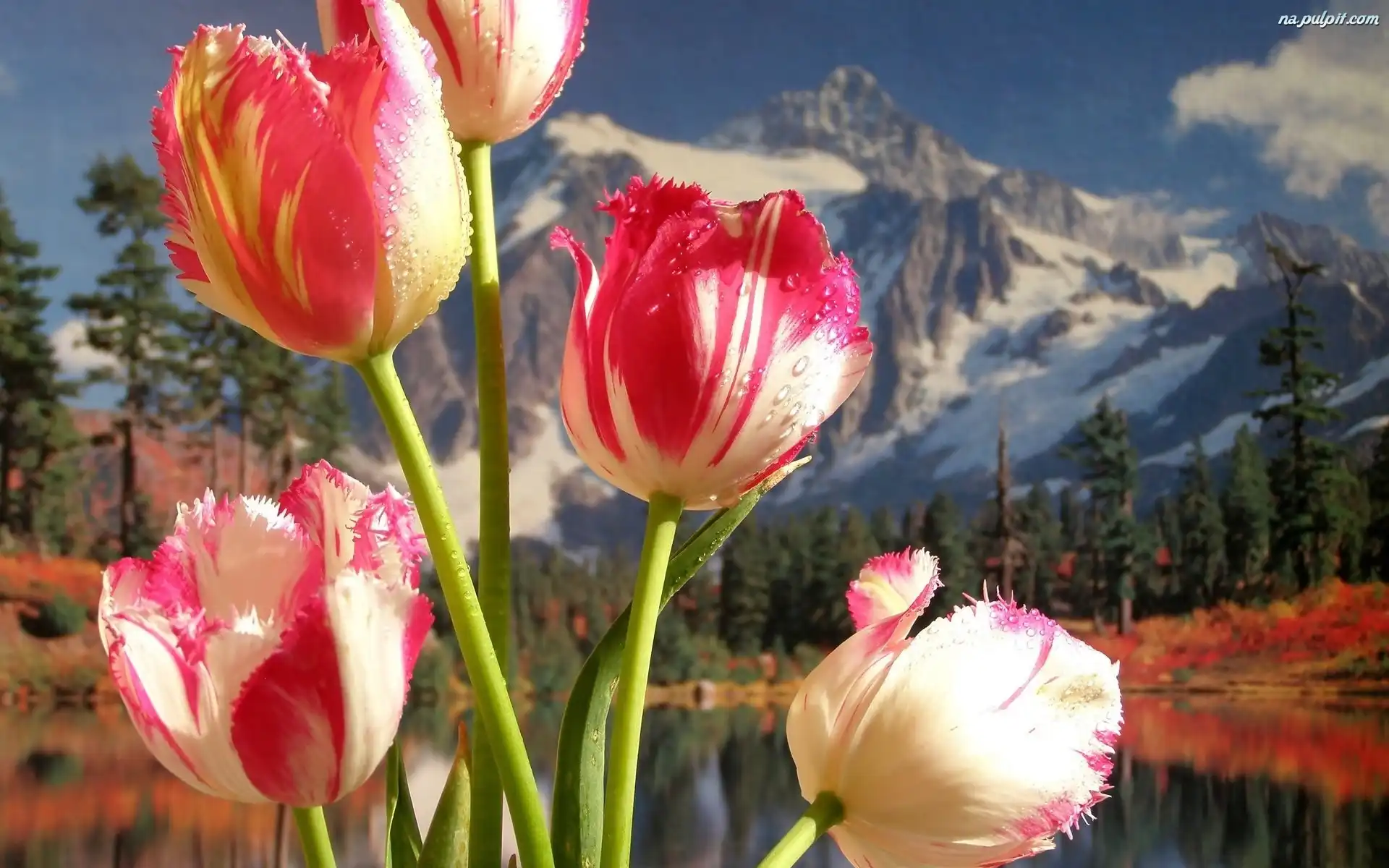 Różowe, Tulipany Torebka, Wstążka, Tulipany, Papierowa Fale, Drzewo, Góry, Plaża Bukiecik, Tulipanów Paprocie, Góra, Wodospady Góra, Irlandia, Kamienie Góra Góra Zima, Góry, Francja, Jezioro Tulipany, Wstążka Czerwone Tulipany Żółte i Czerwone Tulipany Góra Plantacja, Tulipanów