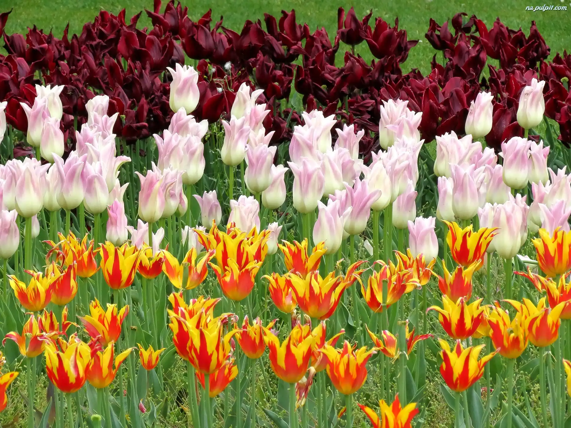 Tulipany, Pomarańczowe, Różowe, Kwiaty, Bordowe Na Pulpit