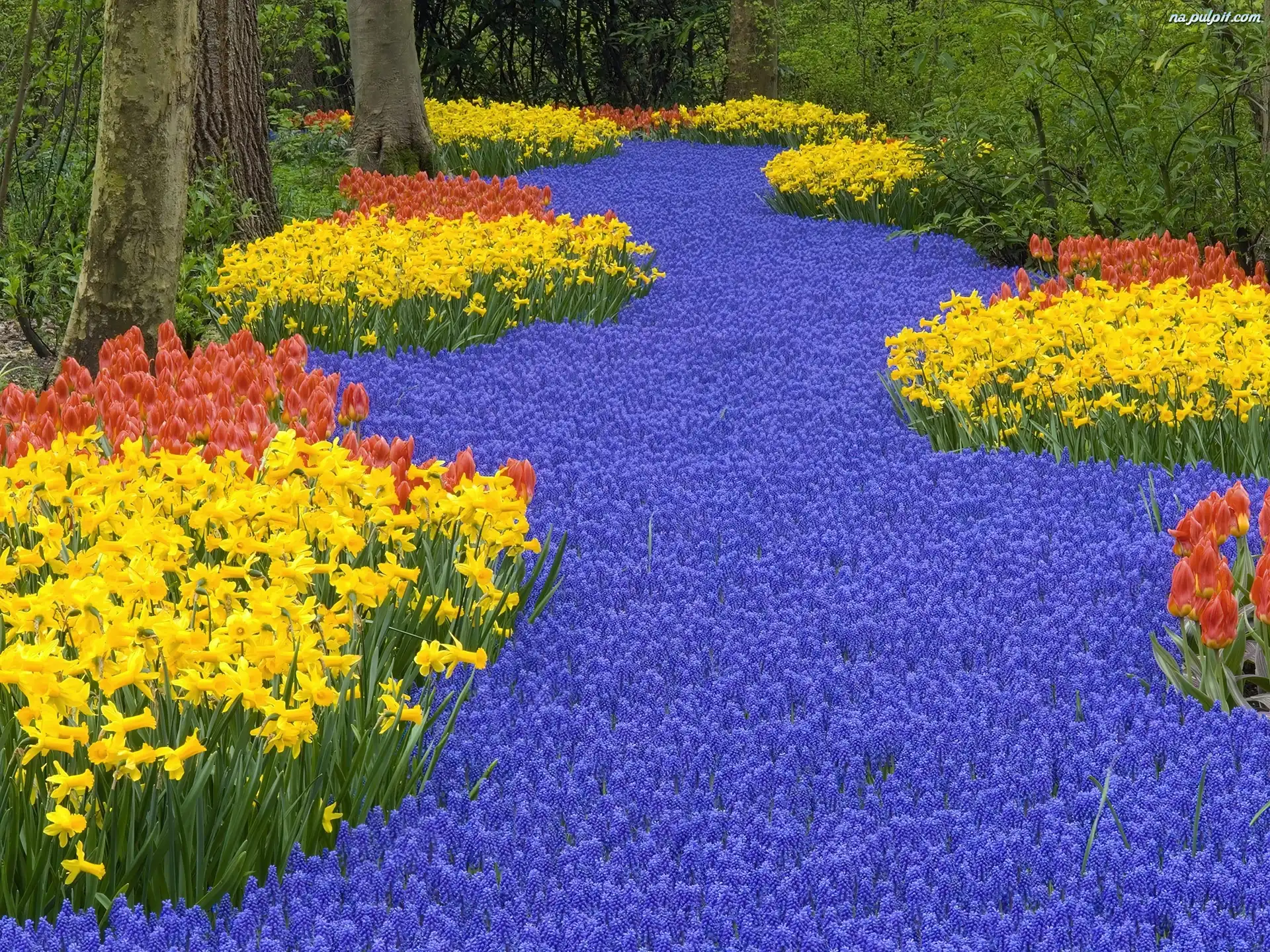 Tulipany, Kwiatów, Dużo, Las, Żonkile Na Pulpit