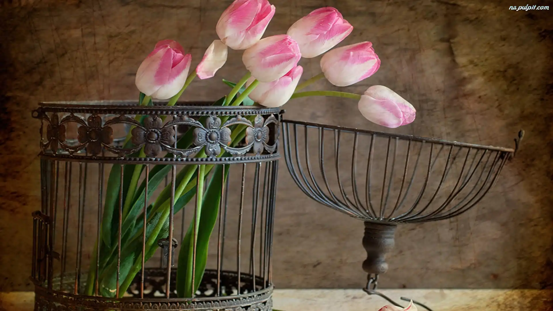 Tulipany, Klatka, Metalowa, Różowe Na Pulpit
