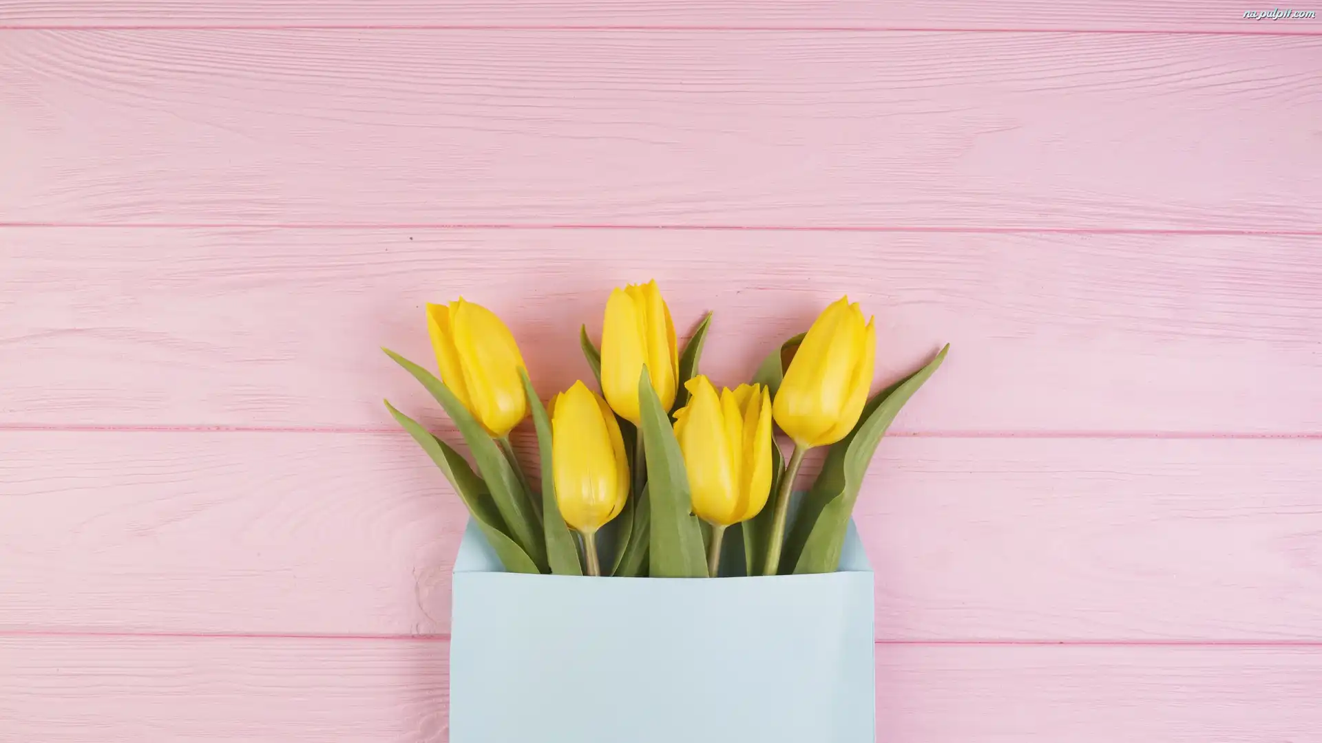 Tulipany, Papierowa, Torba, Różowe, Żółte, Deski