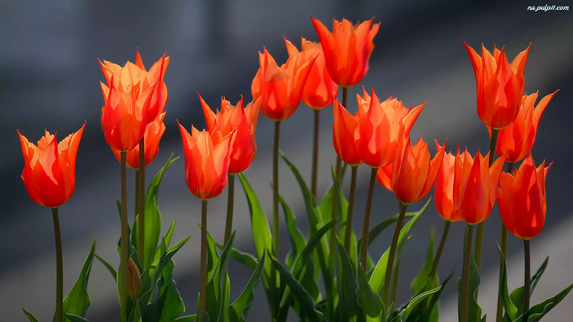 Kwiaty, Tulipany, Pomarańczowo-czerwone, Zbliżenie Na Pulpit
