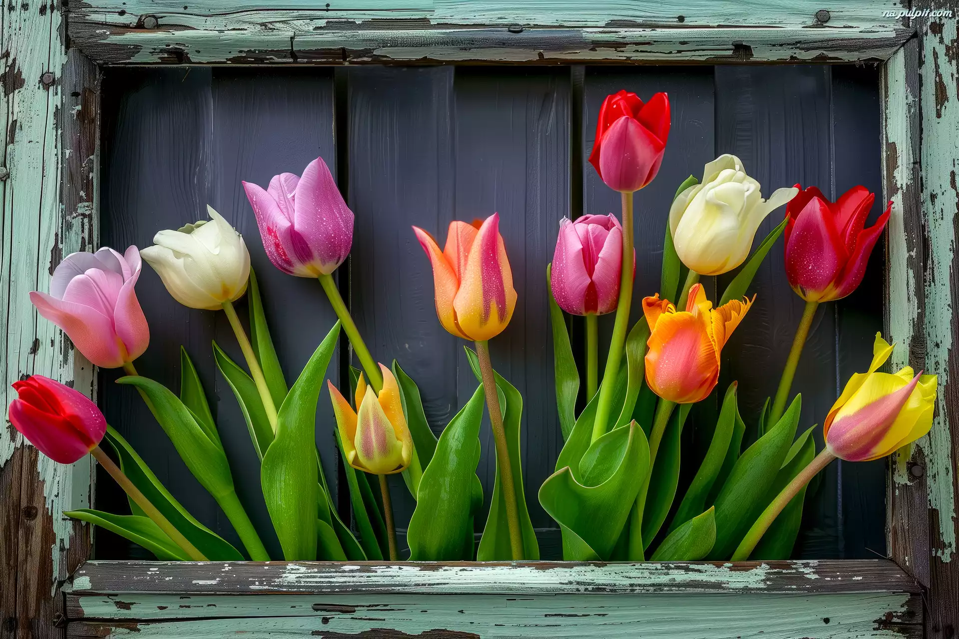 Tulipany, Różnokolorowe, Ramka