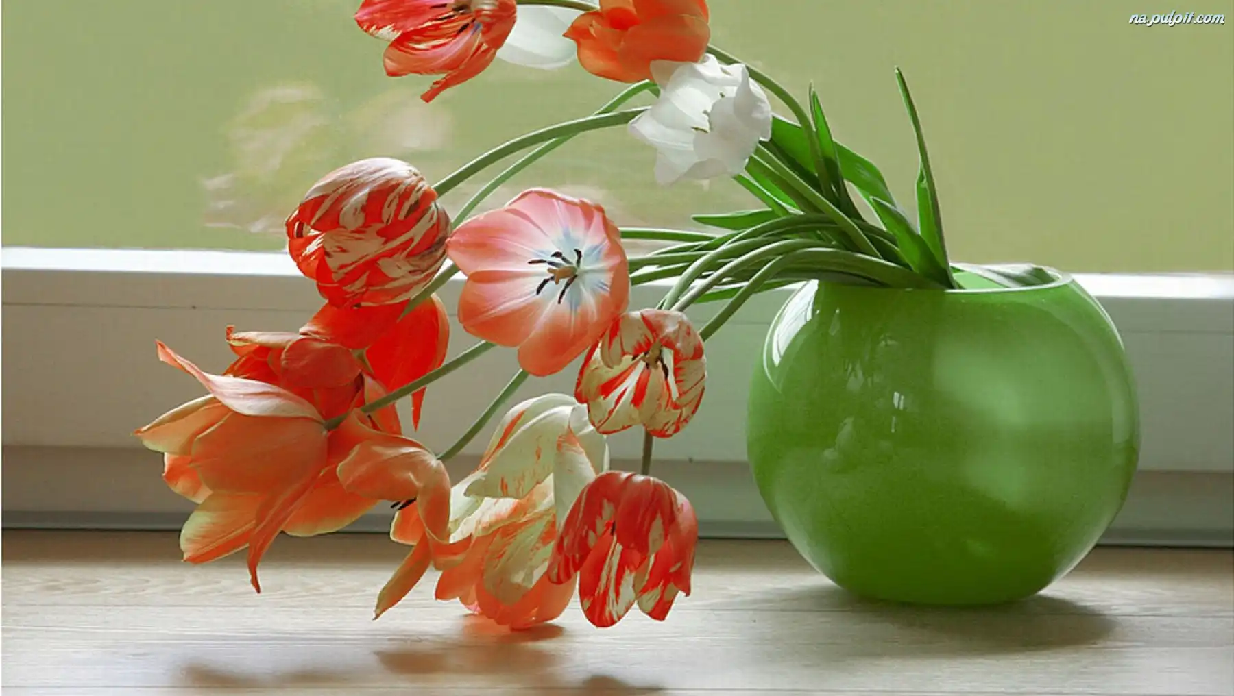 Wazonik, Tulipany, Zielony Na Pulpit