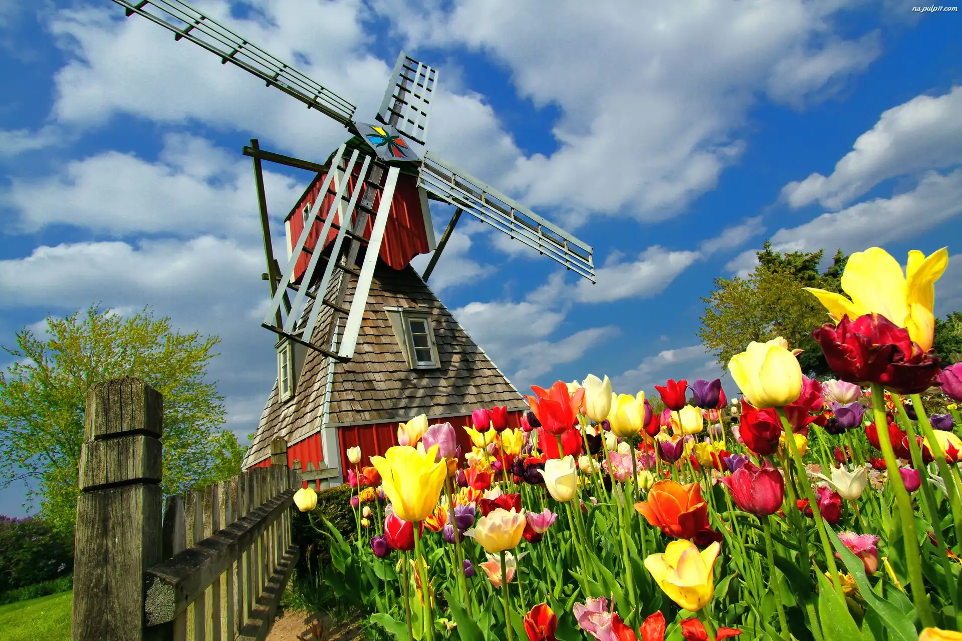 Tulipany, Płot, Wiatrak, Pole Na Pulpit