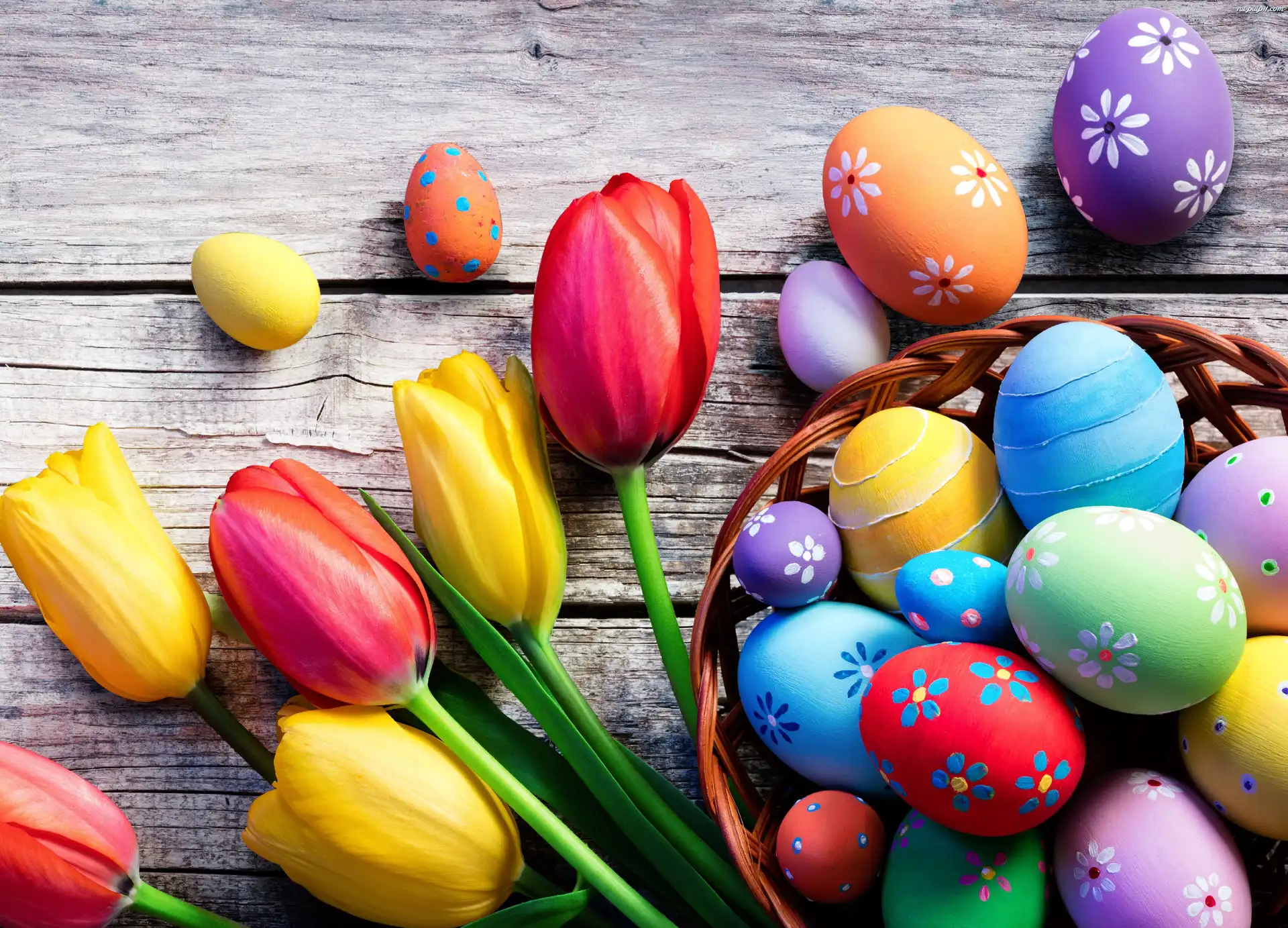 Ławka, Wielkanocne, Jajka, Tulipany, Koszyk Na Pulpit